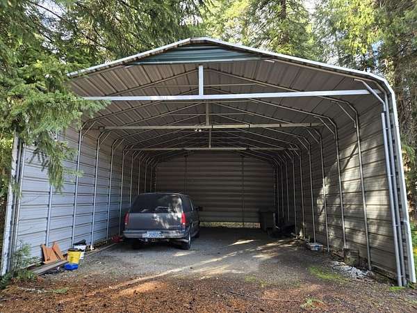 Est $1,331/mo3Bdr/1Bth on 3 beautiful flat acres. 1297 SF., nice kitchen, rich wood cabinets, vinyl floor, double pane windows, garden window, laundry room, ceiling fans, water filter in kitchen, bathroom and at pump, good well per seller, wood stove, large shop with 220, storage building, garden area or dog run. RV or boat awning,, storage with room for small boat, lots of sugar pine, cedar Douglas fir trees, and an apple tree.