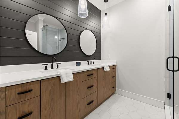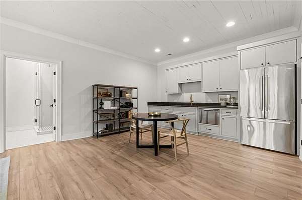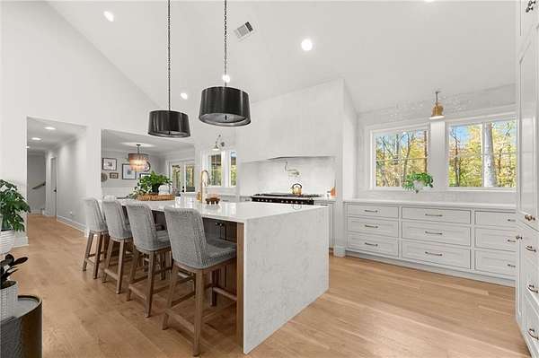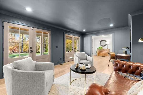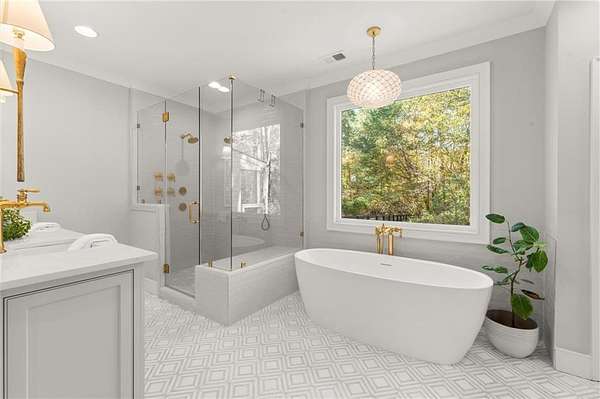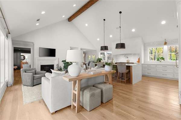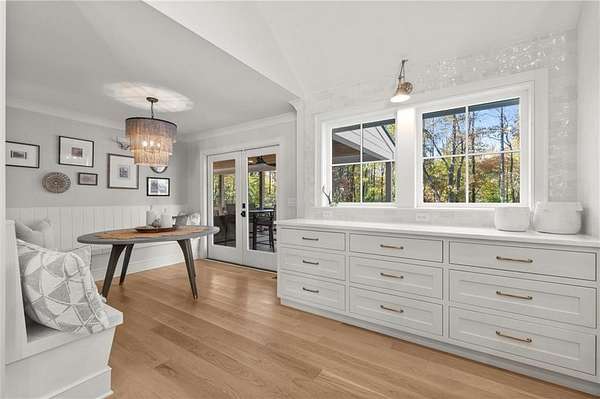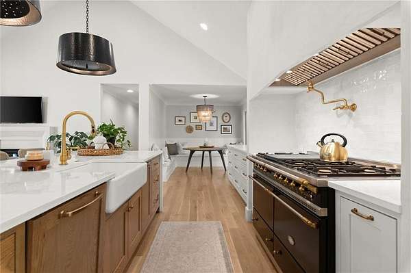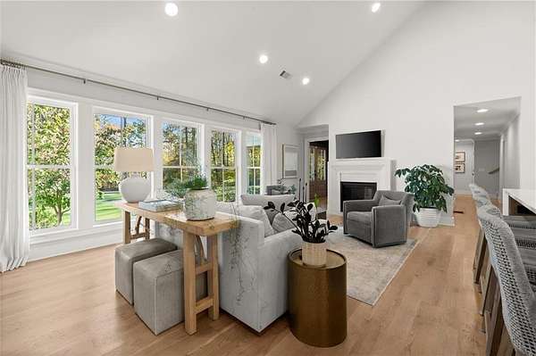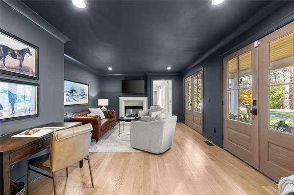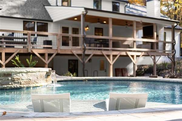 A Modern Farmhouse Revival with lots of heart and soul! Originally a 1960's Ranch, reimagined in 2023 and now a 2025 showpiece...this one-of-a-kind property perfectly blends timeless charm with modern sophistication. Tucked away on 5+ private acres in one of Southeast Cherokee's most coveted locations, the setting feels like a step back in time - a long gravel drive meanders past green pastures, miniature farm animals, and mature shade trees before revealing the stunning farmhouse that awaits. Set on a gently elevated, level lot with sweeping views of the quiet landscape, this home offers a lifestyle of peaceful seclusion just minutes from everything. Spring and Fall bursts with color as ornamental trees and flowering shrubs awaken across the property - a dream retreat for those who crave serenity, nature, and a sense of "living off the grid" without sacrificing convenience. Inside, discover a thoughtfully reimagined design centered around open-concept living and distinguished detail. The vaulted fireside family room, expansive island kitchen, and cozy study set the tone for connection and comfort. The chef's kitchen is a showstopper - featuring quartz countertops, designer vent hood, and a Lacanche range, complemented by a scullery with Miele built-in coffee maker and abundant prep space. The main level primary suite offers tranquil views and a spa-inspired bath with heated tile floors, while a brand-new studio suite (with private entry, mini kitchen, full bath, laundry hookups, and garage) creates the ideal setup for multigenerational living, guests, or a teen retreat - all on one level. Upstairs, two additional bedrooms and a full bath provide flexibility and comfort. The terrace level adds more living space with a recreation area, home gym, and full bath. Step outside to your private outdoor oasis - a covered porch with stone fireplace overlooking a heated saltwater pool and spa, perfect for relaxing as deer wander by. A double-gated entry welcomes you home to total privacy. This property is more than a home - it's yours for the taking and the making...craft your perfect lifestyle here!