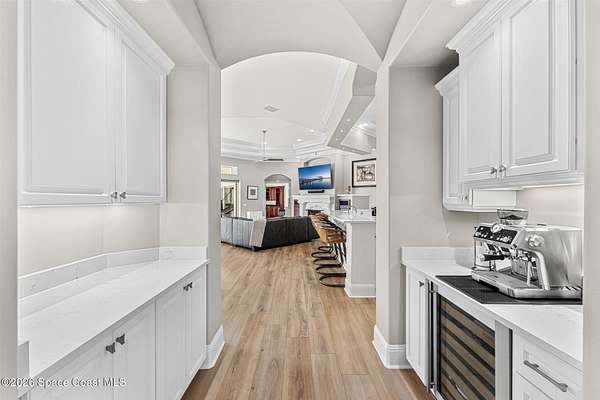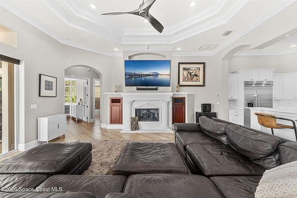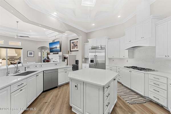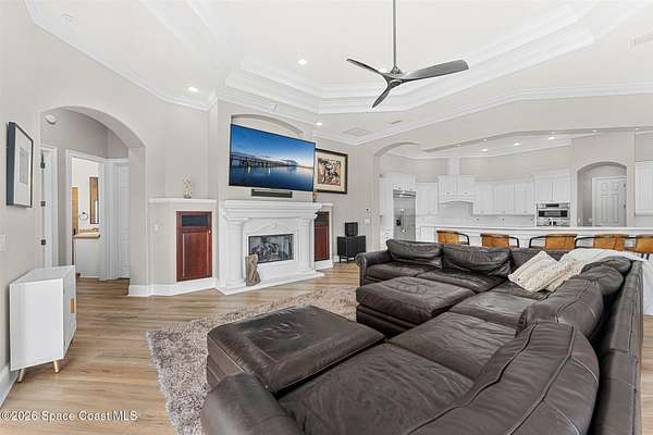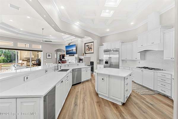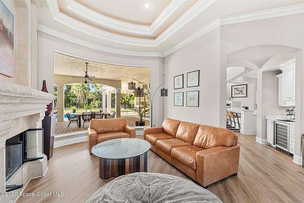 Tucked away at the end of a quiet cul-de-sac in the prestigious Summer Lakes community, 4410 Chiming Lane is a truly exceptional, custom-built estate that blends elegant design with resort-style living. Set on an expansive 1.58-acre lot, this one-story residence offers nearly 5,400 square feet of refined living space under air, surrounded by lush, mature landscaping that creates a private and serene retreat. From the moment you arrive, the expansive driveway and four-car garage set the tone for the scale and quality found throughout. Inside, a bright and open floor plan is enhanced by tray and coffered ceilings, custom built-ins, and two natural gas fireplaces that add warmth and architectural interest to the living spaces. Designed for both everyday comfort and impressive entertaining, the gourmet kitchen features a large center island, generous breakfast bar, quartz countertops, and high-end stainless-steel appliances. A wet bar and coffee station with wine cooler just off... the kitchen adds an extra layer of convenience and sophistication. The home also includes a dedicated office and a stunning bonus/game room with hardwood floors, cherry cabinetry, and a wet bar perfect for hosting guests or relaxing with family. The spacious primary and guest suites are thoughtfully arranged, with a total of four bedrooms and five bathrooms offering privacy and comfort for everyone. Seamless indoor-outdoor living is achieved through 90-degree sliding glass doors that open to an oversized lanai featuring a summer kitchen, saltwater swimming pool, and spa creating the ultimate Florida lifestyle setting for year-round enjoyment. This home is as practical as it is beautiful, featuring a whole-house generator, high-impact translucent shutters, and Armor Screen protection on both the lanai and front entry for peace of mind. The roof was replaced in 2023, and both the interior and exterior have been repainted, ensuring the property is move-in ready. With its combination of luxury, privacy, and thoughtful upgrades, 4410 Chiming Lane offers a rare opportunity to own a true resort-style estate in one of the area's most sought-after communities.
