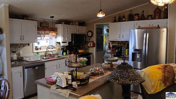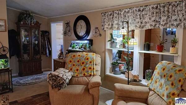 Picturesque 2.26 Acre homestead, near Rockville Indiana. Beautiful setting! Very nice 2 to possible 3 br, 1990 manufactured home with 2 full baths, split br floor plan. Open concept Lr/Dr/kitchen. 10 x 11.6 Storm basement. Clean, great storage. Inviting covered back porch W/ wide open view of back of property. Section is fenced. Interior is clean, move in ready. Fireplace. All kitchen appliances stay as well as extra cabinetry. Nice Island. Laundry/pantry room. Includes water softener and newer washer and dryer, one year old. 24 x 24 Detached garage built in '91 with built on room, heated and cooled, recreation, hobby room. Was a wood shop at one time. ALSO built 2012, 40 x 32 x14 Pole Barn. Cement floor. Includes fridge and freezer. This property has so much to offer with room to grow. Take a look soon!