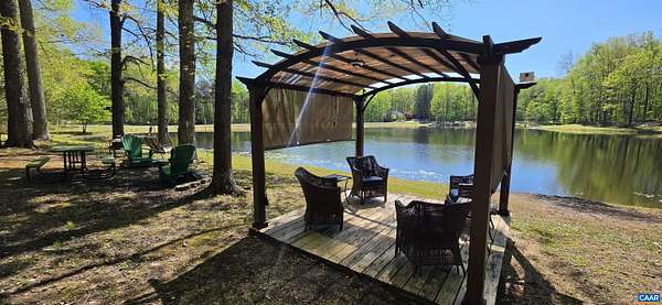Experience the perfect blend of serenity and convenience in this stunning waterfront retreat, situated in sought-after Goochland County less than 3 miles from I-64. Offering an easy commute to both Short Pump and Charlottesville, this home provides a rare "vacation at home" lifestyle on a semi-private 7+ acre lake. Whether you enjoy boating, fishing, or just calm, serene beauty, your backyard is a private sanctuary where wildlife abounds. The exterior is a nature lover’s dream, featuring a charming country covered front porch, a lakeside pergola, beautiful flowers, and the practical peace of mind provided by a whole-house room. The heart of the home is the expansive family room, boasting vaulted ceilings and panoramic lake vistas with direct access to the rear deck. The chef’s kitchen is equipped with stainless steel appliances, a center island, a pantry, and a sun-drenched breakfast nook overlooking the water. For formal gatherings, a dedicated dining area flows seamlessly into the living spaces. Retreat to the main-level primary suite, a true oasis featuring two walk-in closets and a recently remodeled spa-like bathroom complete with a soaking tub, separate shower, and dual vanities. Two additional bedrooms and 1.5 baths round