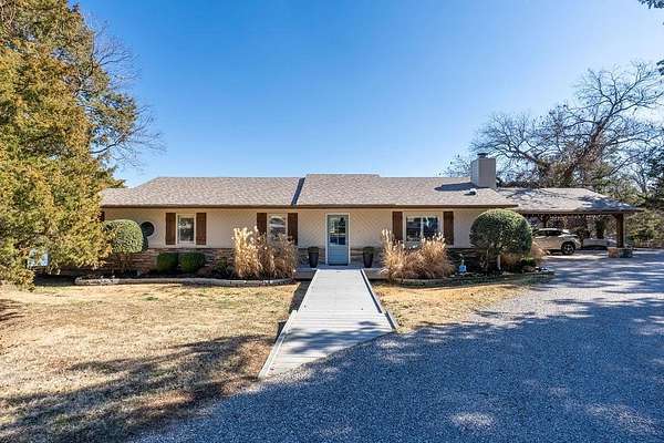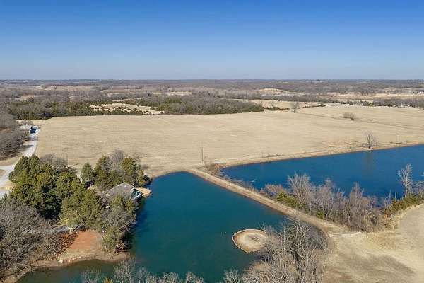 Opportunities like this don't come along often-50 breathtaking acres steeped in local history and ready for your next chapter. Owned by the same family for over a century and operated as a successful sod farm for decades, this remarkable property blends rich heritage with endless potential. With rolling pastures, mature woods, and multiple ponds, the land is perfectly suited for those dreaming of building a larger private lake, creating a legacy estate, or simply enjoying wide-open space. Located just north of The Farm Development, and just east of Brangus Road on 45th Street, the property welcomes you through an electric gate and along a scenic paved driveway that sets the tone for what's ahead. At the heart of the property sits a charming, easy-to-maintain home nestled among towering pine trees. Inside, the main living area is a showstopper with floor-to-cathedral-ceiling windows on three sides, offering panoramic views of the expansive pond. Step outside to the wraparound deck and outdoor kitchen, where every day feels like a peaceful retreat. Scattered across the acreage are multiple ideal homesites, giving you the flexibility to build your dream home overlooking water, pasture, or wooded privacy. A special piece of history remains in the original cabin built by the owner's great-grandfather, now serving as a unique and usable guest quarters. Additional features include: Multiple water wells High-speed fiber internet Outside city limits Located in the Grove School District And while it feels like a private escape, you're still conveniently close to everything: Less than 3 miles to I-40 Approximately 34 miles to Tinker AFB Around 39 miles to Bricktown and OKC Thunder basketball Whether you envision a working ranch, recreational retreat, or a legacy property with a custom lakefront estate, this land offers the rare combination of water, history, and possibility-a place to truly build your dreams.