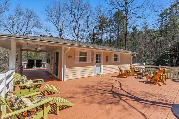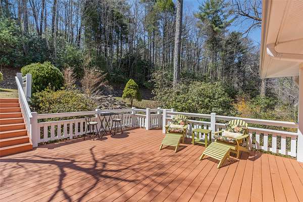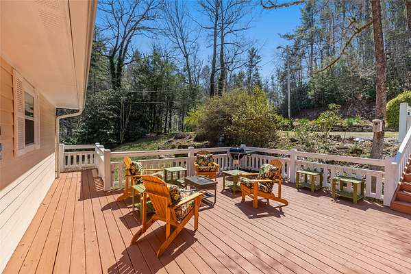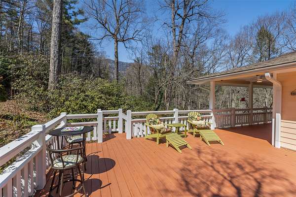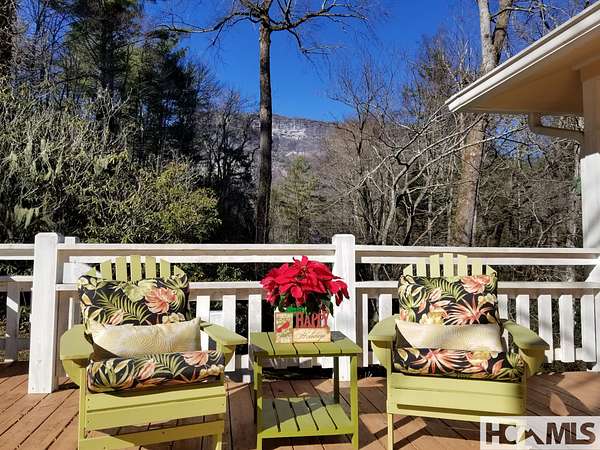 Tucked away near the base of iconic Whiteside Mountain, this charming two-bedroom, one-bath cottage offers the perfect blend of mountain serenity and everyday convenience. Whether you're seeking a seasonal escape or a year-round retreat, this thoughtfully designed home delivers comfort, beauty, and low-maintenance living in one of the Plateau's most desirable locations. Lovingly maintained and enhanced over the years, the interior makes excellent use of space, creating a warm and inviting atmosphere. Step outside and you'll quickly discover what truly sets this property apart-expansive decks that dramatically extend the living and entertaining areas. After all, you're here to enjoy the cool mountain climate, breathtaking scenery, and peaceful surroundings, and these outdoor spaces provide the ideal setting to take it all in-including stunning views of the Whiteside Mountain rock face. Additional features include a separate laundry area and generous lower-level storage, adding practicality to the home's charm. Set on 1.5 gently sloping acres, the property offers privacy, easy maintenance, and parking. Perfectly positioned between Cashiers and Highlands, you'll enjoy quick access to renowned dining, boutique shopping, and a vibrant arts scene. With no rental restrictions, this property also presents an exceptional investment opportunity or an ideal weekend getaway for those looking to escape the pace of city life. A rare opportunity to own a slice of the mountains-relaxed, refined, and ready to enjoy.