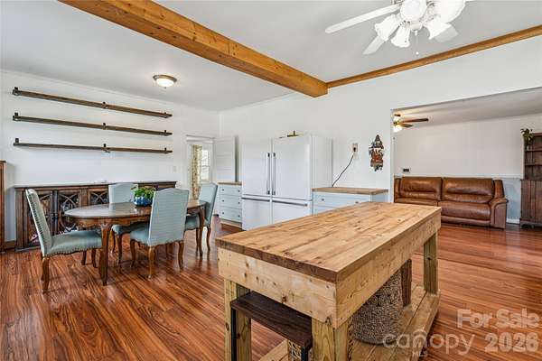 Welcome to your private farmhouse retreat on over 3 fully fenced acres, where peaceful country living meets thoughtful upgrades and endless possibility, a rare opportunity to own the perfect homestead property. From the moment you arrive, you'll feel it. A beautiful entry lined with roses welcomes you home, bursting into bloom in the summer and setting the tone for what lies beyond. Step onto the property and take in the breathtaking views of a neighboring pond and open pasture, creating a setting that feels like a dream and lives like one every day. This home has a top of the line custom built fence, featuring reinforced 2x6 construction and cemented posts for long term durability and peace of mind. At night, the front fencing is beautifully lit, casting a warm glow across the property. The land is ready for your vision, whether that includes horses, farm animals, or simply wide-open space to enjoy. You'll also find a variety of mature fruit and nut trees, including pecan, peach, pear, cherry, mulberry, and fig, along with an asparagus bush. As you walk inside, the home blends charm with extensive upgrades. A newly added sunroom filled with windows offers the perfect place to relax and take in the surrounding views year-round. If cooking is a passion, this kitchen will truly feel like the heart of the home. Thoughtfully updated just a few years ago, it features beautiful butcher block countertops, a stunning stove, and a charming farmhouse sink that perfectly complements the home's character. With two full-size refrigerators side by side, you'll have all the space you need for entertaining, meal prep, or everyday living. The home has been thoughtfully improved with numerous updates, including new windows, HVAC system, septic and well system, whole-house water filtration, and freshly cleaned air ducts, providing comfort and confidence for years to come. The basement offers incredible flexibility, featuring a workshop area, garage space, and abundant storage. Additional structures on the property add even more versatility: a barn, chicken coop and a second outbuilding perfect for a she-shed, man cave, playhouse, or private retreat space. For those with recreational vehicles or additional needs, the property is also equipped with a 50-amp RV hookup. Whether you're looking to create a hobby farm, enjoy quiet mornings overlooking the water, or simply have space to live freely, this property delivers a lifestyle that's hard to find. Opportunities like this don't come around often. The land, the views...it feels like something out of a Hallmark movie. Schedule your showing and experience it for yourself!