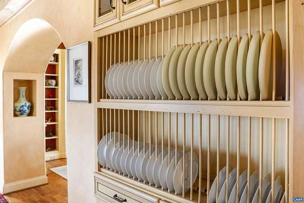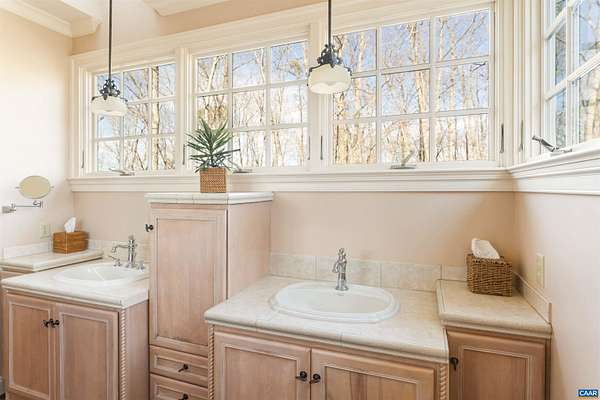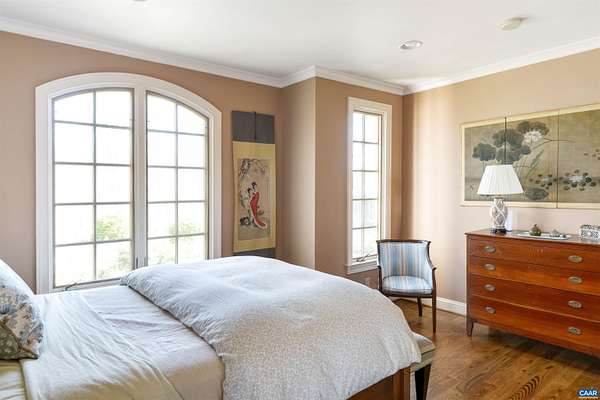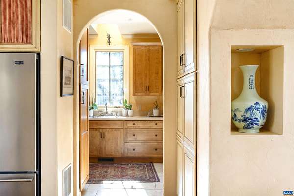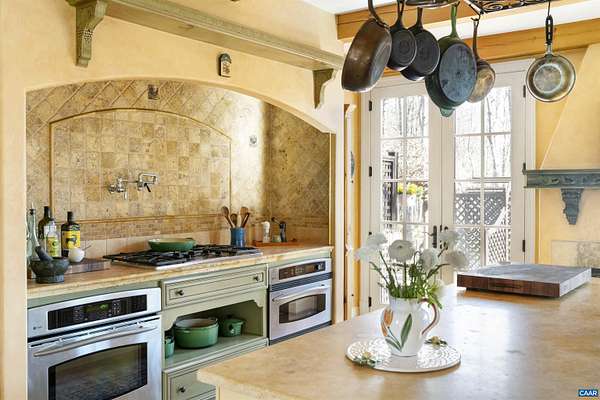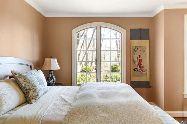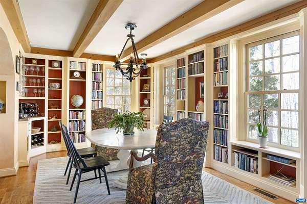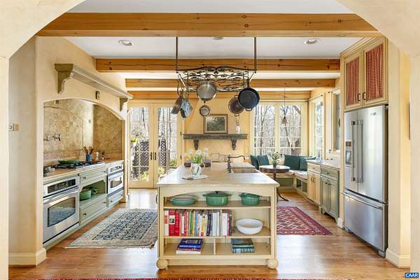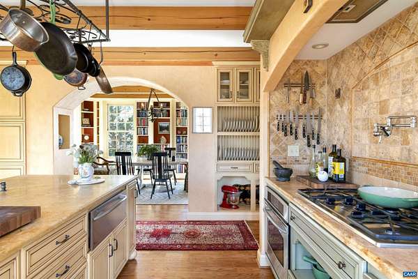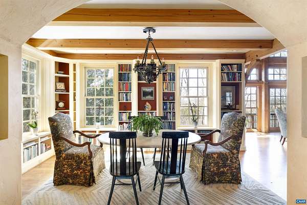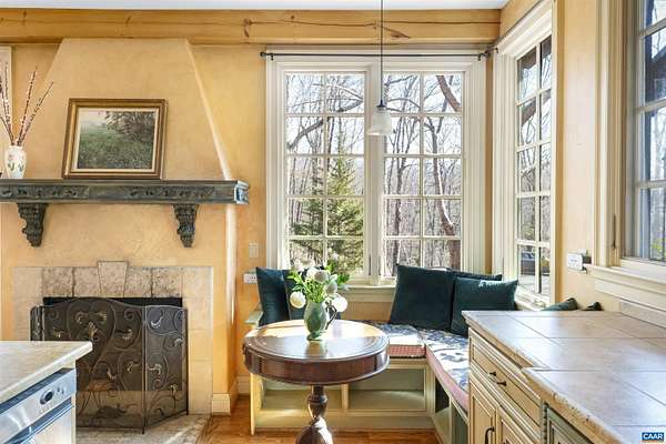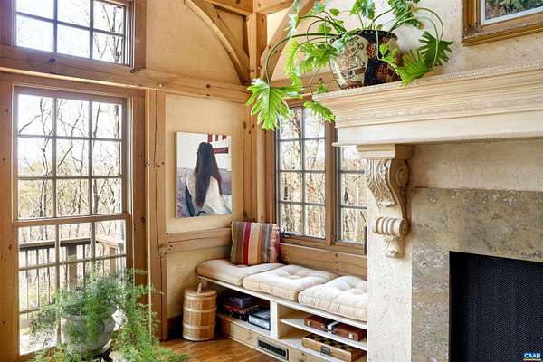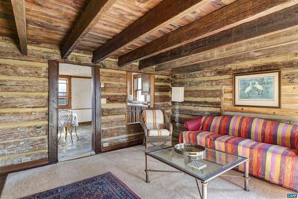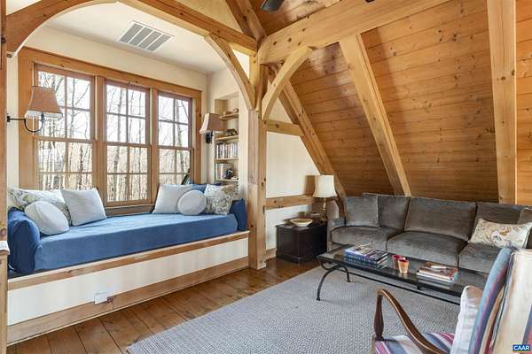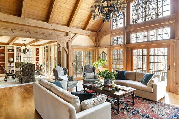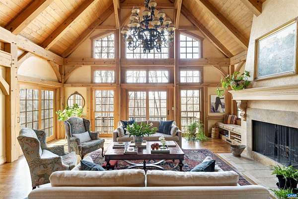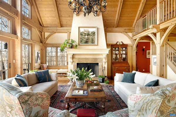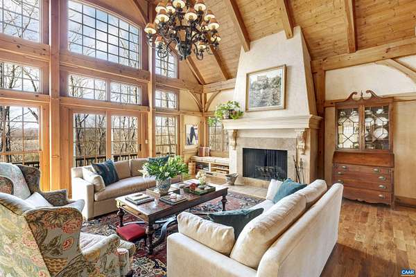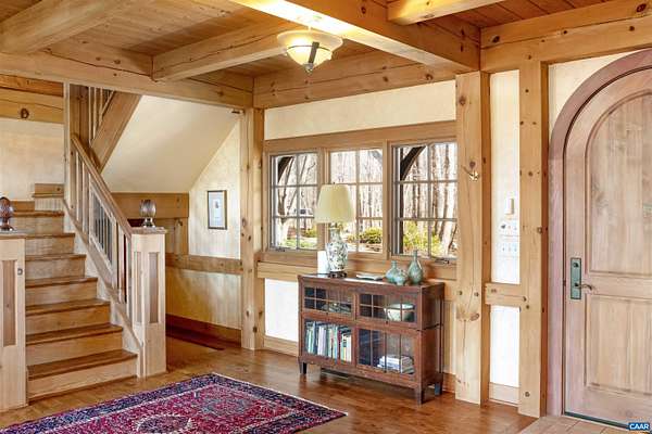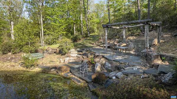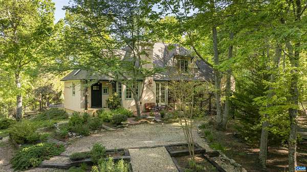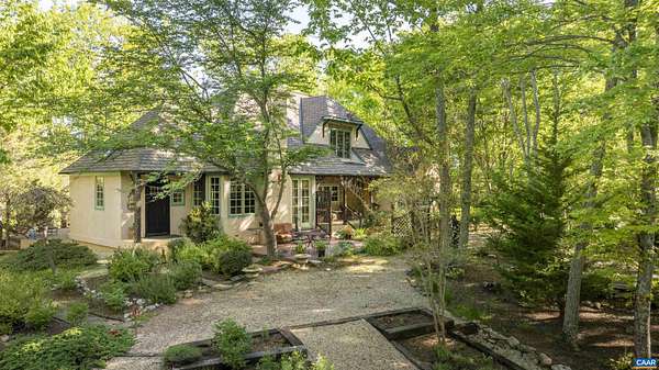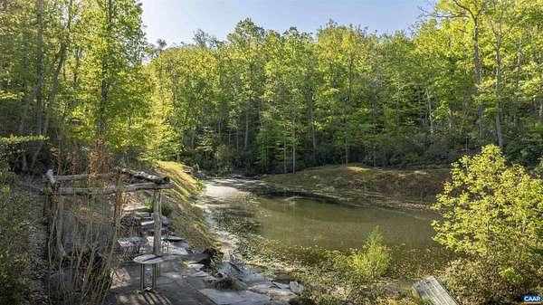 Set on 34.5 acres in Albemarle County, this custom Timberpeg hybrid home is a private retreat built for both work and play. Vaulted timber-frame ceilings, arched windows, and a travertine fireplace bring European-inspired style, while the chef's kitchen--with arched cooking hearth, travertine sink, and island--anchors the main living space. Flexible interiors include a loft, studio above the garage, and a spacious lower level with full walkout, perfect for a gym, gaming setup, or creative workspace. Outside, trails wind through woods and past a spring-fed pond, while stone patios and landscaped gardens provide places to unplug. A separate log cabin guest house welcomes friends or serves as a private crash pad. The barn offers paddocks and pasture for horses, but with high-speed fiber internet, it also doubles as a large office, workshop, or start-up hub. Remote yet connected, this property blends total privacy with modern infrastructure--ideal for anyone seeking a self-sufficient base close to the James and Rockfish Rivers, with added value through division rights and forestry-use tax advantages.