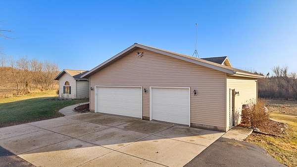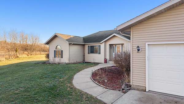 This beautiful 3 bedroom, 3 bath ranch home is set on 17.56 serene acres surrounded by mature trees and open sky. The property blends wooded privacy with wide-open farmland, offering a rare mix of seclusion and usable space. The home sits comfortably within the landscape, providing peaceful views in every direction. Along the wooded border, the sellers have installed 4 tree stands that are ready to use! The spacious three-car garage provides ample room for vehicles, equipment, or hobby projects. On the main level, you'll find an open, bright living and kitchen area, laundry, fireplace, spacious bedrooms, and more. The primary ensuite features double walk-in closets, a double sink, and a shower and shower/tub combo! The sellers have made numerous updates over the last few years including: 2
