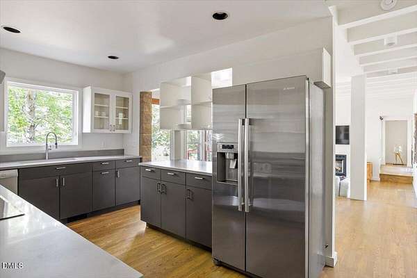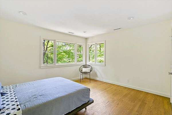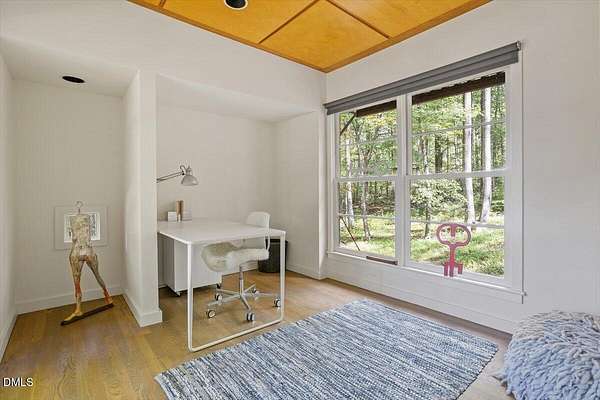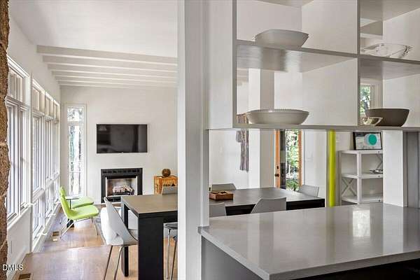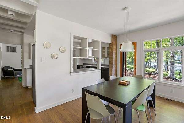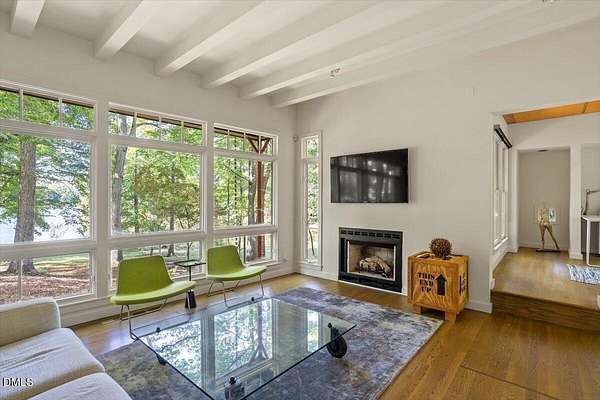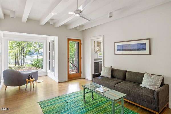 The Davidson Residence in Hillsborough, NC, by Dail Dixon, is a compelling evolution of mid-century modernist principles, where disciplined geometry, natural materials, and meticulous proportion create a house that is as much art as it is living space. Drawing inspiration from Japanese architecture, the modernist design emphasizes harmony, restraint, and the careful orchestration of light and shadow, while expansive glazing and open circulation forge a seamless connection between interior and the surrounding landscape. Nestled on a rare and idyllic private lake, just minutes from historic downtown Hillsborough and with easy access to main highways, the residence offers a unique blend of serene waterfront living and closeby connectivity. Recognized with an AIANC Merit Award, the house exemplifies Dixon's mastery of translating mid-century modernist ideals-clarity of form, spatial fluidity, and integrity of material-into a serene, site-sensitive home that celebrates both the human scale and the enduring dialogue between architecture and nature. Dail Dixon himself~