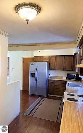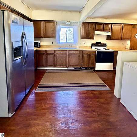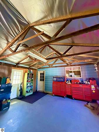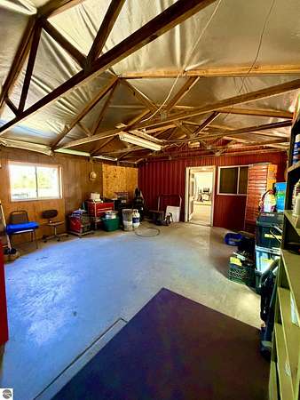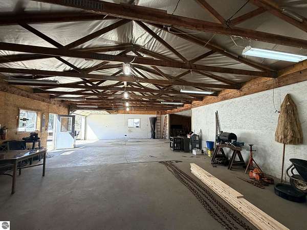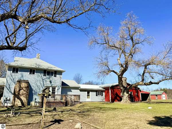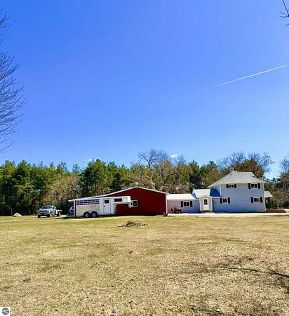 Welcome to 4419 E Moorestown Rd, where Northern Michigan charm meets uncompromised utility. The front of the home welcomes you with traditional farmhouse charm & large heritage trees. This meticulously managed 10-acre homestead features a 12-foot deep pond stocked with fish, fruit-producing trees, & abundant wildlife. The Adventure Starts Here! Minutes away are multiple access points to over 133 miles of explorable trails within the combined Kalkaska & Missaukee County system. For the serious hobbyist or professional, the colossal 2,041 sq. ft attached workshop is a game-changer. It’s completely insulated, has a wood stove, and includes its own convenient plumbed half bath. For those looking to start a hobby farm, a connected dedicated animal & hay area (32x13) is positioned perfectly to the rear of the shop. On the crest of the property, overlooking the pond, sits a 30x16 pull through pole barn on a concrete slab. This classic farmhouse offers a wonderful living layout that just needs your vision & finishes! The kitchen is spacious, appliances stay, and there is a walk-in pantry next to the fridge. The main level also features a rare powder room and a dining area with French doors opening to a deck that overlooks large trees and a grassy lawn. The living space is centered around a floor-to-ceiling natural sandstone faux fireplace. Upstairs, the main bathroom includes both a tiled shower and a separate tub. The second bedroom is especially spacious and could be easily divided to make a third bedroom. Secluded Privacy & Modern Convenience. The city of Cadillac is just a 20-minute drive away, providing easy access to major retailers, entertainment, and medical facilities, including Munson Healthcare. Traverse City, a top world destination, is located approximately 1 hour from your driveway. This property checks all the lifestyle boxes! Schedule a showing today to start the adventure and make this all yours!