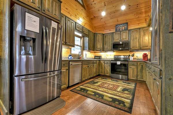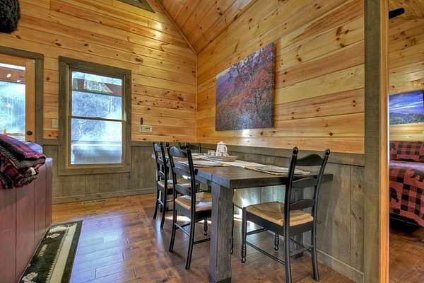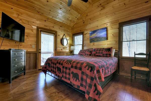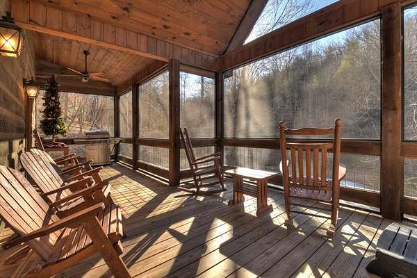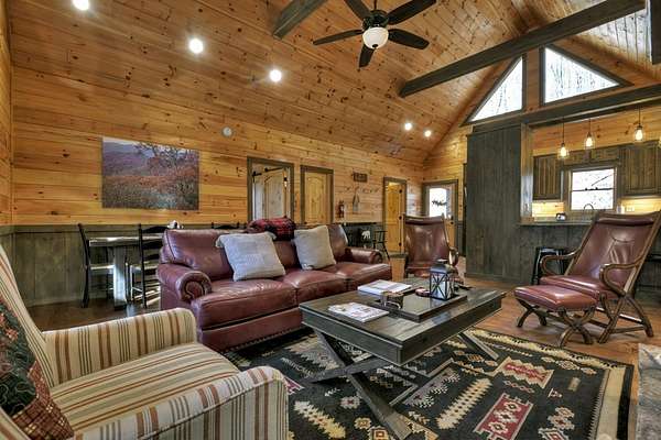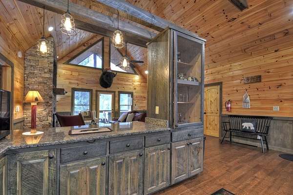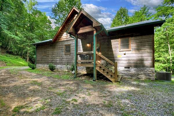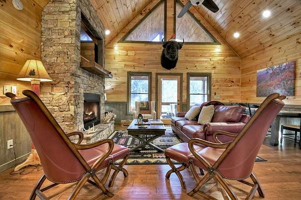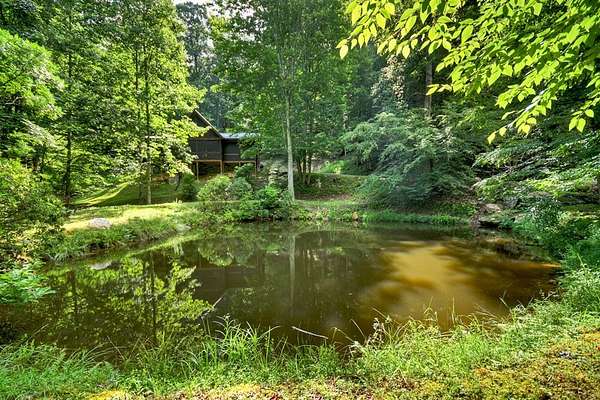 Introducing your dream retreat! Nestled in a secluded 3+ acre wooded enclave, this 2-bedroom, 2-bath ranch cabin exudes rustic charm and serenity. Imagine unwinding by a babbling branch, surrounded by pristine ponds and the tranquil whispers of nature. Step inside and you're greeted by a warm, wood-clad interior illuminated by an abundance of natural light from plentiful windows and sky-high ceilings. The heart of the home features a massive stone fireplace, perfect for cozy gatherings, and an open kitchen/living/dining area ideal for entertaining. Each of the split primary bedrooms boasts a private bath, ensuring comfort and privacy for all. Our outdoor living space is just as inviting, with a sprawling, screened porch that offers picturesque views of the surrounding mountains and lovely little lakes. This cabin comes tastefully furnished, complete with a hot tub, making this a turn-key purchase whether you're an investor or searching for a perfect personal getaway or full-time residence. Enjoy the great outdoors with a fabulous fire pit area and ample space to roam. Don't forget your fishing poles for engaging with nature in your own backyard! Plus, you're just a hop, skip, and a jump from local trails, Lake Blue Ridge, and the Toccoa River, offering endless recreational opportunities. This cabin has also proven to be a successful short-term rental, appealing as a lucrative investment opportunity. Ready for the ultimate in privacy and charm? This cabin is more than a home; it's a lifestyle waiting for you to embrace.
