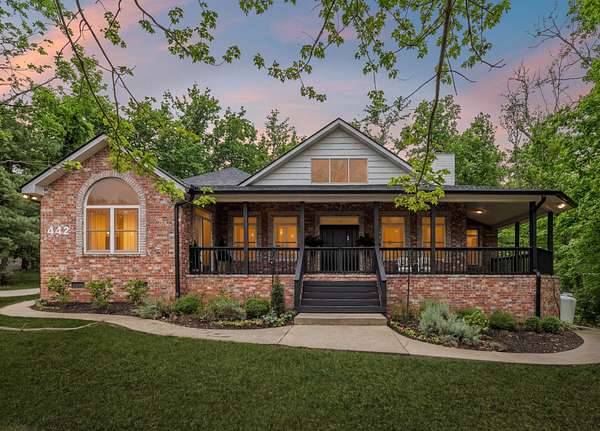 Experience Tennessee living at its finest in this stunning brick home set on 1.9 acres with a river view from the front porch and wooded privacy behind. A wraparound porch captures breathtaking sunrise and sunset views. The main level offers three bedrooms and two full baths, while an upstairs bonus/media room with a full bath sits above the oversized three-car garage. Designed for primarily one-level living, the home features generous storage and thoughtful upgrades throughout, including a chef’s kitchen with an oversized island, abundant cabinetry, double ovens, cooktop, and stainless steel appliances. Architectural details include arched doorways and a wood-burning fireplace with stone surround. Updated bathrooms complete the interior. Enjoy views of the Cumberland River and easy access to Cedar Creek Marina, just a 15-minute drive away.