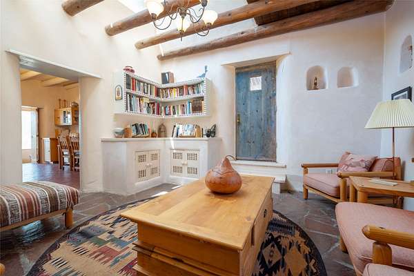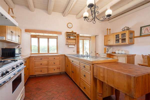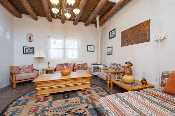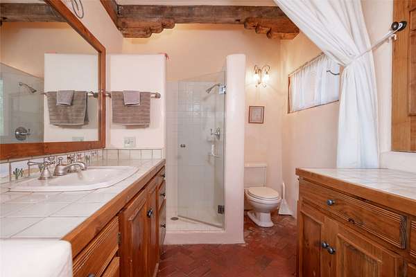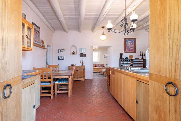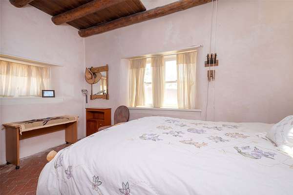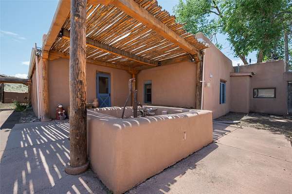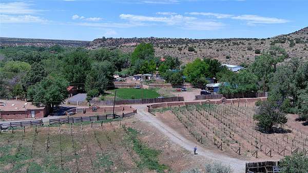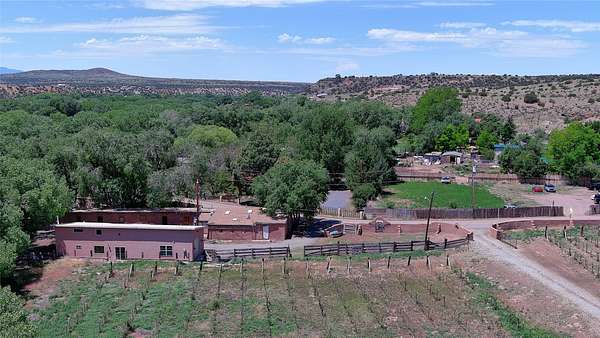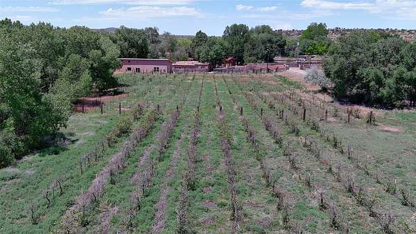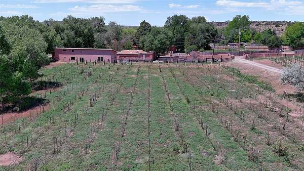 La Cienega Vineyard Estate - Four Parcels with Adobe Homes, Studios & Acequia Water Rights. Discover a unique opportunity in the heart of historic La Cienega-a vibrant 6-acre vineyard comprising four separately deeded parcels, rich with potential and authentic New Mexico charm. Anchored by two traditional adobe homes, the estate is steeped in regional character and surrounded by natural beauty. The main house features 3 bedrooms, 2 baths, and showcases classic Santa Fe style with brick floors, vigas, and elegant touches throughout. The adobe main residence is a quintessential historic home in the La Cienega Village. The second adobe home offers additional living space or rental income potential. In addition to the homes, the property includes a partially completed two-story apartment-ready for your finishing touches-and several studio structures that could be transformed into creative workspaces, studios, rentals or other uses associated with the Vineyard. The well-maintained vineyard is nourished by valuable acequia water rights, ensuring sustainable growth and offering agricultural possibilities for wine production, agritourism, or farm-to-table ventures. With flexible uses and multiple dwellings already in place, this rare offering is ideal for a variety of uses-live/work, multi-generational living, a creative retreat, or a boutique vineyard business. Properties with this combination of history, water, and opportunity are seldom available in La Cienega