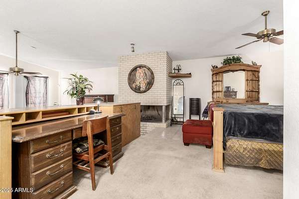 Experience the ultimate in rustic luxury with this breathtaking mid-century home, nestled on a sprawling 3.24-acre horse property! This residence is truly great for multi-generational living, offering incredible flexibility. You'll adore the stunning views of the Superstition Mountains from every angle. Inside, you're welcomed by the warm glow of three fireplaces, each providing the perfect backdrop for cozy nights spent with loved ones. If you're a foodie, you'll love the wood-burning pizza oven-perfect for crafting homemade, artisanal pizzas with your own personal touch. With three kitchens, including one in the mother-in-law quarters and another in the separate casita with a full kitchen, you'll have ample space to cook and entertain guests. The main kitchen is a chef's dream, offering sleek granite countertops, built-in appliances, a convenient serving window, and a peninsula with a breakfast bar. The spacious primary bedroom showcases plush carpeting, direct outdoor access, and closets with mirrored doors. For ultimate privacy and convenience, each bedroom in this home has its own bathroom! Enjoy your own personal backyard oasis with a sparkling pool, the perfect spot to relax and soak up the sun. The property also features a massive garage/shop with an industrial car lift, providing abundant space to work on vehicles or extra storage. With five spacious bedrooms, including a detached studio-style guest house, you'll have plenty of room for hosting loved ones. The real showstopper? The astonishing views of the Superstition Mountains will take your breath away every day. Plus, you'll appreciate easy freeway access just one mile away. What's not to love about this unique blend of comfort, space, and natural beauty? Inquire today!