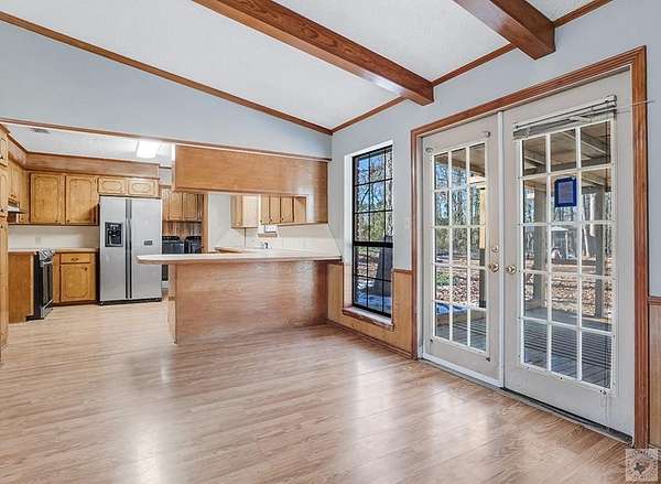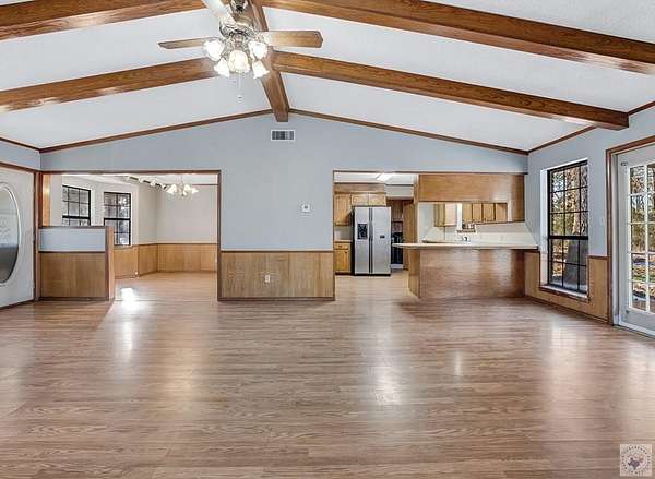 Welcome to 442 Co Rd 1215, where peaceful country living meets untapped potential on a sprawling 1.5-acre lot in sought-after Texarkana. This charming 3-bedroom, 2-bathroom home offers 1,708 square feet of living space just waiting for your personal touch. Step inside and you'll immediately notice the thoughtful split floor plan that provides natural separation between living and sleeping areas. Each bedroom features oversized walk-in closets, delivering the storage solutions modern families crave. Bold wood accents throughout the home create warmth and character, while generous windows bathe the interior in natural light. The heart of this home centers around an open kitchen that flows seamlessly into a spacious laundry room-practical design that makes everyday routines effortless. Whether you're preparing weeknight dinners or hosting weekend gatherings, this layout accommodates your lifestyle with ease. Outside, the property truly shines. Mature trees create a stunning natural canopy, offering shade and privacy that transforms this acreage into your personal sanctuary. Imagine summer evenings under the stars or crisp autumn mornings surrounded by nature's beauty. Located just minutes from Redwater High School and within easy reach of Texarkana's amenities, this property strikes the perfect balance between seclusion and convenience. The solid bones and quality construction provide an excellent canvas for renovation enthusiasts ready to add their signature style.