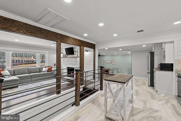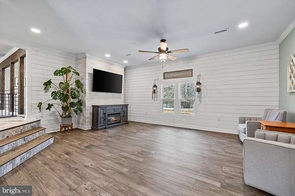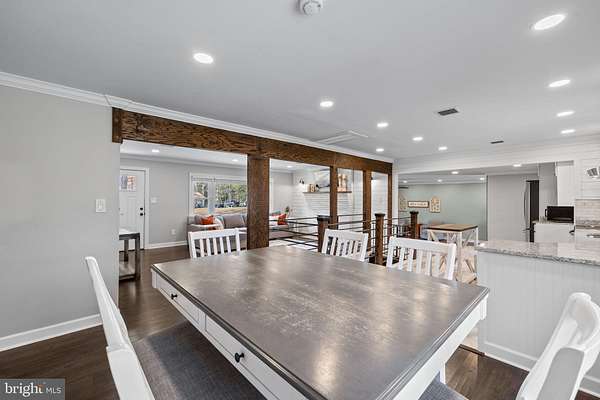 - Attic, Breakfast Area, Ceiling Fan(s), Crown Moldings, Dining Area, Entry Level Bedroom, Gourmet Kitchen, Pellet Stove, Recessed Lighting, Tub Shower Bathroom, Upgraded Countertops, Window Treatments, Wood Floors