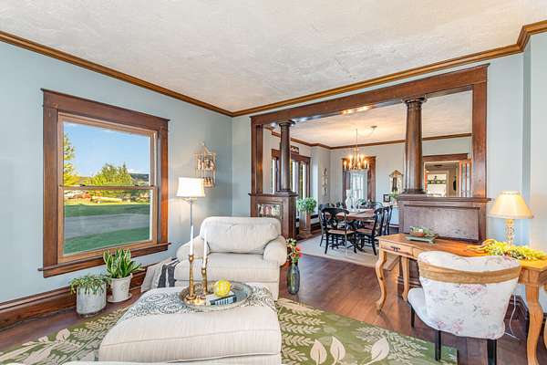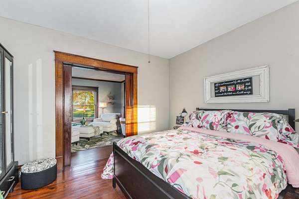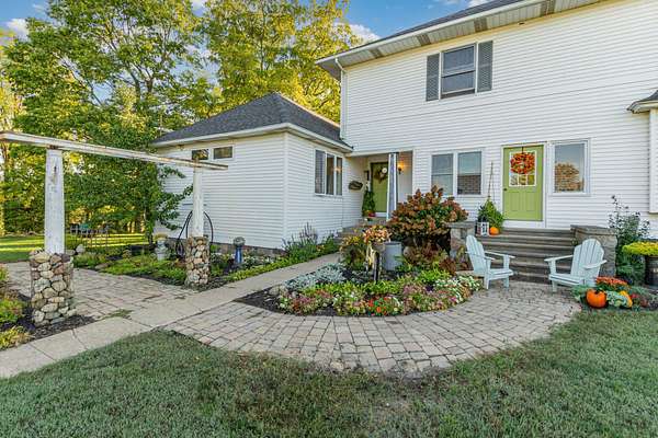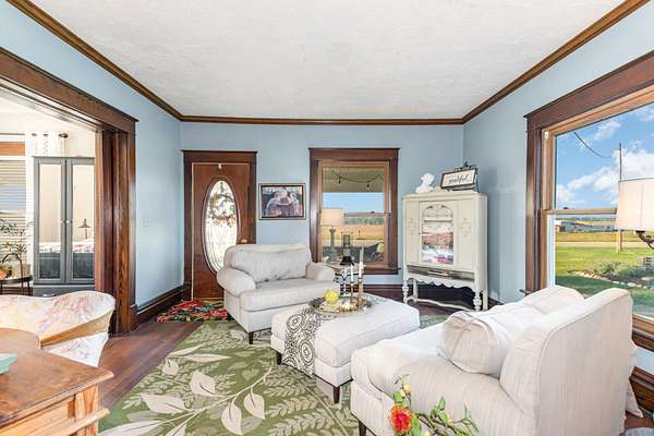 Fantastic historic home, beautifully set, overlooking rolling farm hills! Wonderful spot that can be used and enjoyed in many ways. You can have a stunning, roomy 2 story farmhouse all to yourselves. Or perhaps what the current Sellers have done--a successful airbnb. Live on the first floor and have a complete setup to offer your clients on the second floor. (Sellers have a Client list ready to pass along!) This house is breathtaking, absolutely charming and meticulously kept. There is a lot of original wood work, in the flooring, windows and trim. The first floor features a delightful gathering room on the back of the house, with a beamed cathedral ceiling and a stone fireplace. The kitchen has lovely white cabinetry, a center island, beadboard ceiling, and ample storage. There is also a stately dining room, a classy living room, and a ''parlor,'' which currently makes a sweet bedroom! Upstairs are 4 sumptuous bedrooms, one of which has a fireplace and is being used as the cozy living and kitchenette spot for the airbnb guests. Outside you have a romantic front porch overlooking acres of farmland, as well as carefully tended gardens and flower beds. This really is one of those "MUST SEE" properties!