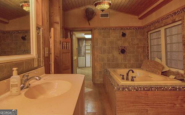 - Double Vanity, Master On Main Level, Separate Shower, Soaking Tub, Tile Bath