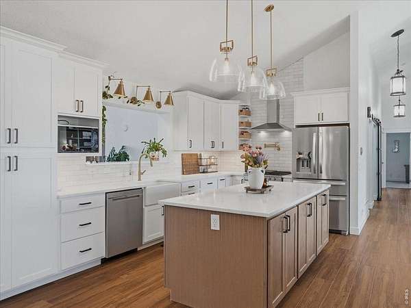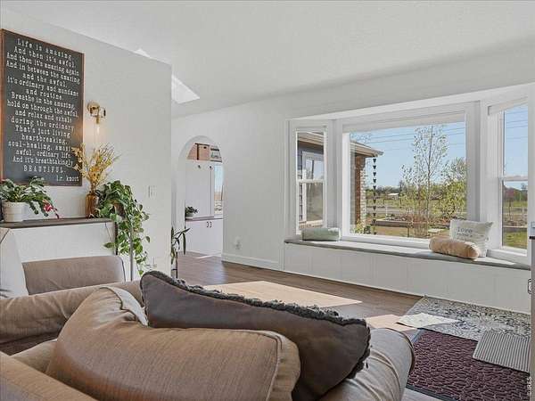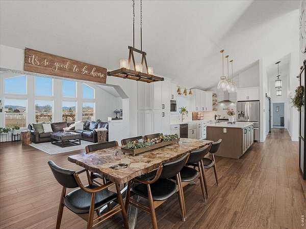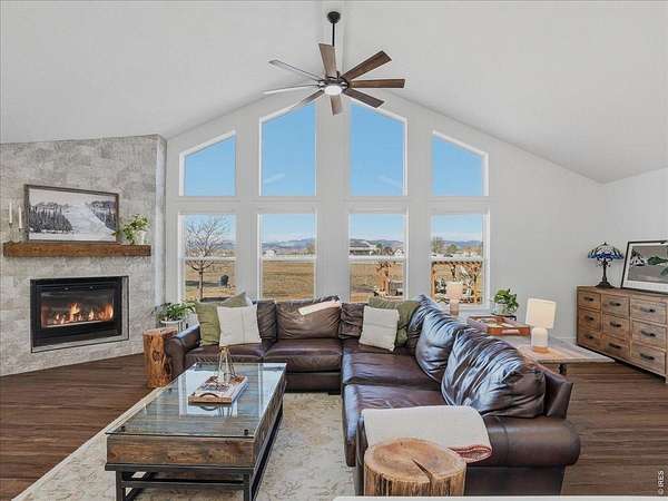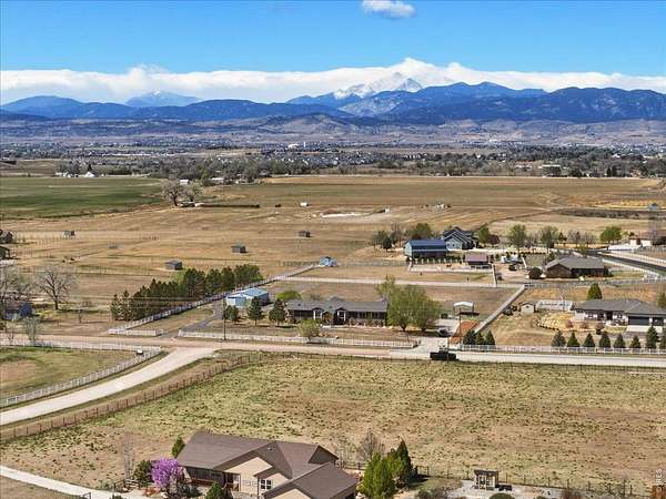 Come see this gem; your private slice of Northern Colorado, where modern farmhouse design meets wide-open space and breathtaking mountain views. With NO HOA ~ Situated on 3 acres, this beautifully remodeled home offers a seamless blend of style and function. Inside, you'll find a light-filled, open-concept layout with great finishes, clean lines, and thoughtfully updated spaces throughout. The kitchen and living area create an inviting central hub, ideal for both everyday living and entertaining. Step outside and take in the breathtaking views of Longs Peak and Mount Meeker, a rare and stunning backdrop that truly sets this property apart. The acreage provides room to roam, with an outbuilding with concrete flooring and electrical; offering additional flexibility for storage, hobbies, or workspace. Enjoy the peace and privacy of country living while still being within easy reach of town amenities. With one amenity, golf!! only 4 miles from TPC golf course. A unique opportunity to own a thoughtfully updated home with land, views, and versatility. Few items to mention;new windows, new trees with dripline to each, new baseboards, fully fenced, horses allowed.