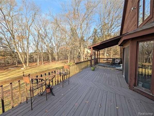 Step outside onto the expansive rear deck stretching across the back of the home, where western exposure delivers stunning sunset views through the trees.