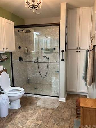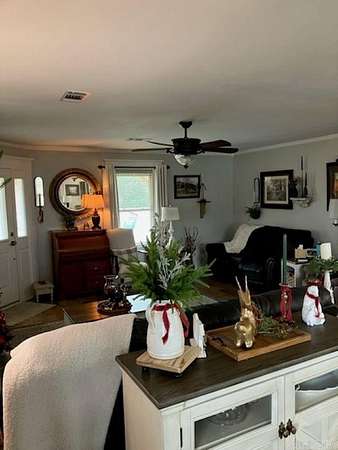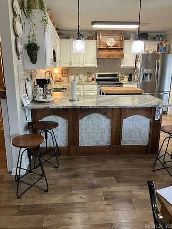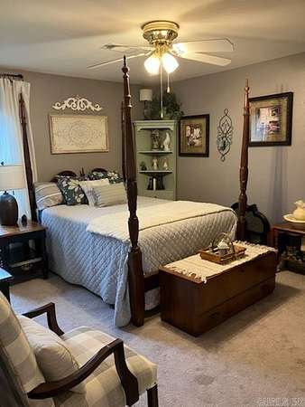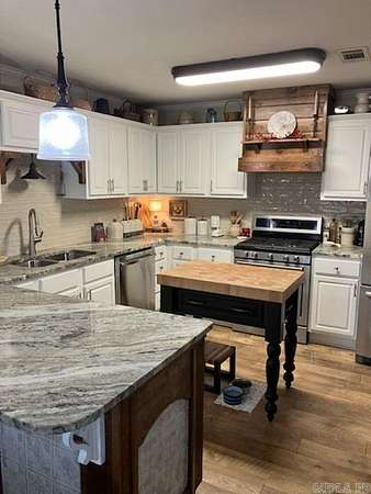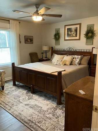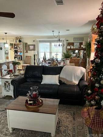 This charming home sits on 2.38 acres on Hwy 36 outside Searcy city limits. It was remodeled in 2021 to include new windows, flooring, paint throughout, and both bathrooms and the kitchen were redone. The whole home features some amazing craftmanship in the details. The home features 2 baths, 3 bedrooms (the 3rd on is being used as a den), crown molding in common areas, hard surface countertops, a large pantry with a prep area, an oversized 2 car garage, large asphalt parking area, metal roof(2017), gas wall heater for back up heat, asphalt driveway, a large shop, a spacious storage building, a pavilion for entertaining, a great storm cellar with a sidewalk leading from the garage, some beautiful views and so much more. This home is priced to sell, so come see it today!!!