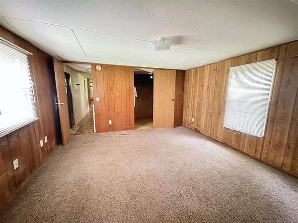 Affordable country living! This 2 bed, 2 bath manufactured home offers 896 sq ft (per CH) of cozy living space and sits on 3 private acres in the quiet, rural Lowrey area just north of Tahlequah. The home features an open layout, split-bedroom design, and scenic surroundings. Perfect for a homestead, rental, or weekend retreat if you are handy and can make the repairs! Bring your tool belt and imagination! . Enjoy the peaceful pace of country life with space to garden, roam, or expand--all just a short drive from town.