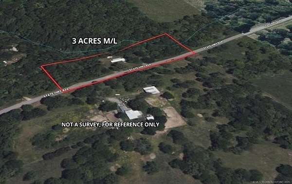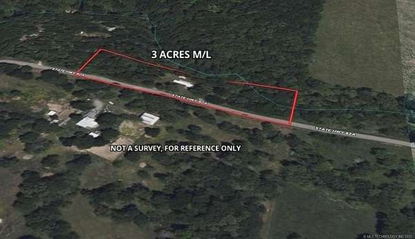 This 3-acre property is located at 4422 Highway 82 A in Tahlequah, OK 74464. The property is pending sale. It has a 896 sq ft 2 bedroom, 2 bath house built in 1982.