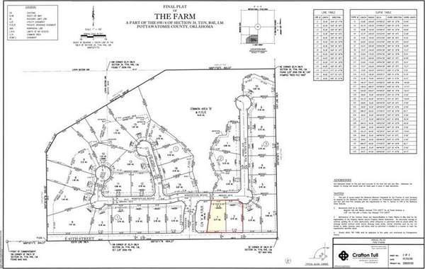 Welcome to The Farm. This Greg Brown development is one of Shawnee's newest and most unique developments which was built on a working sod farm. If you would like a peaceful, country living set up with the convenience of being close to shopping, dining, medical facilities and highway access, this may be the place for you. Great for morning or evening strolls, the stunning water views and mature trees throughout this addition makes for a killer view. The Farm is also located in Grove school district which is one of the most sought after schools in our area. This district allows you to have the high school pick of your choice without a transfer. A great location for commuters to OKC or east bound commuters towards the Seminole area. Don't miss your chance to build your dream home in "The Farm"