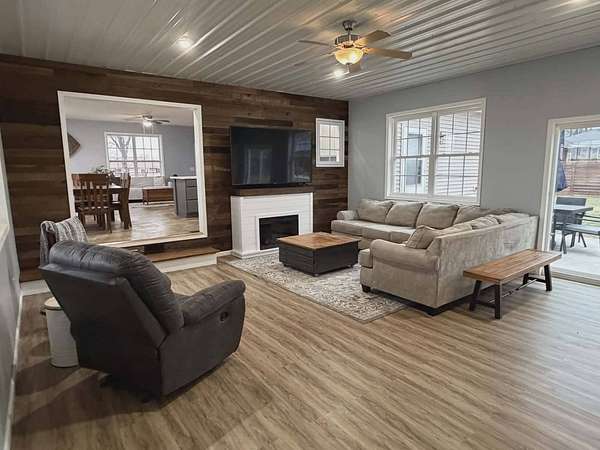 Welcome to this beautifully maintained home offering the perfect blend of comfort and functionality. Featuring a spacious open layout, this property is ideal for both everyday living and entertaining. Enjoy peaceful mornings on the covered front porch swing and take in the wide-open views. The home is complemented by a large detached outbuilding-perfect for a workshop, storage, or hobby space (heated and cooled). Private fenced in side yard, enclosed carport, little farm shed (how about raising some chickens). The inside is absolutely move in ready! The main level floor plan includes; an open living room, kitchen, and dining space, large family room, laundry room, primary suite with spa type attached bathroom, and additional bedroom and bath. The basement has a kitchenette, family room, office, utility/laundry room, two additional bedrooms and two bathrooms!!