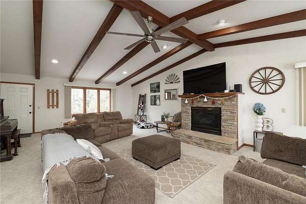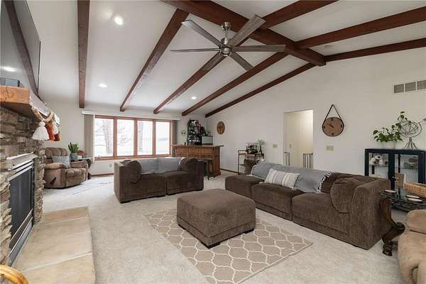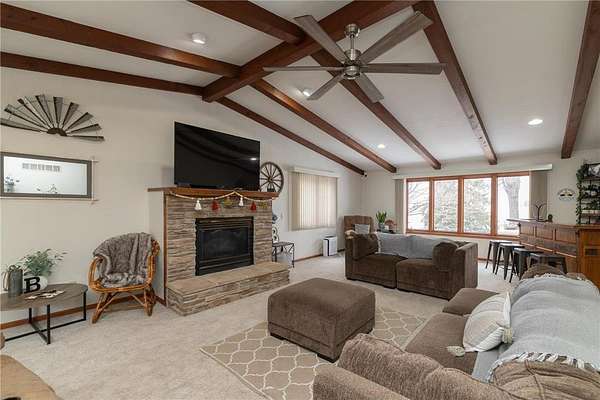 This 2-acre rural property outside Kenyon offers the perfect combination of privacy, functionality, and opportunity. The home features over 2,300 finished square feet on the main level, including a spacious family room with fireplace, kitchen, dining areas, office space, and two bedrooms with two bathrooms.