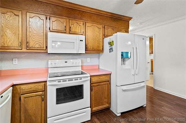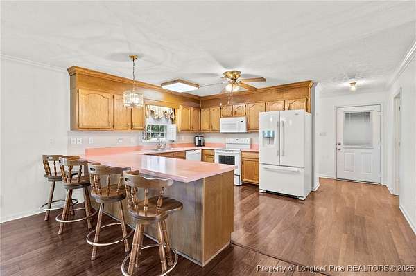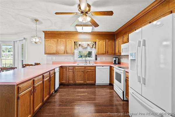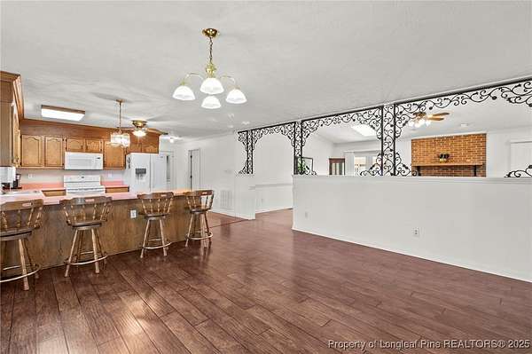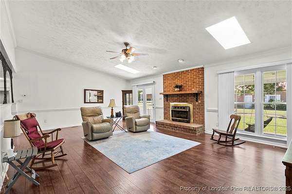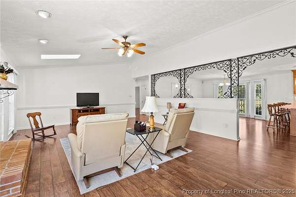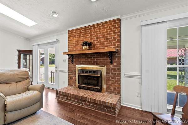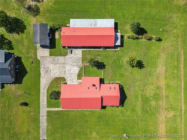 Welcome to this spacious brick ranch that blends comfort, practicality, and country charm. Offering 3 bedrooms, 2.5 bathrooms, this home is thoughtfully designed with upgrades and versatile spaces for every lifestyle. Step inside to find LVP flooring throughout-no carpet-and beautiful crown molding in every room. Skylights in both the living room and primary bedroom provide abundant natural light. The living room features a cozy brick fireplace, while the large kitchen offers plentiful cabinetry, a pantry, and a breakfast bar that's perfect for gathering. The primary suite has its own dedicated water heater for convenience. The property includes an attached oversized double garage with a mini-split system, extra storage in the back, and attic storage. For additional flexibility, a detached double garage comes with an attached mother-in-law suite featuring a full bathroom, screened porch, and carport. The detached garage and extra room has a heat pump. Behind this garage, another storage room could serve as a tack room or workshop. The mother-in-law suite needs some attention, but the potential is excellent. Outdoors, the acreage is enhanced with mature pear trees, peach trees, muscadine vines, pecan trees, and blueberries, all supported by a deep well. A durable metal roof offers peace of mind and low-maintenance living. This property offers room to grow, plenty of storage, and multiple living options-ideal for anyone seeking space, functionality, and the enjoyment of country life.