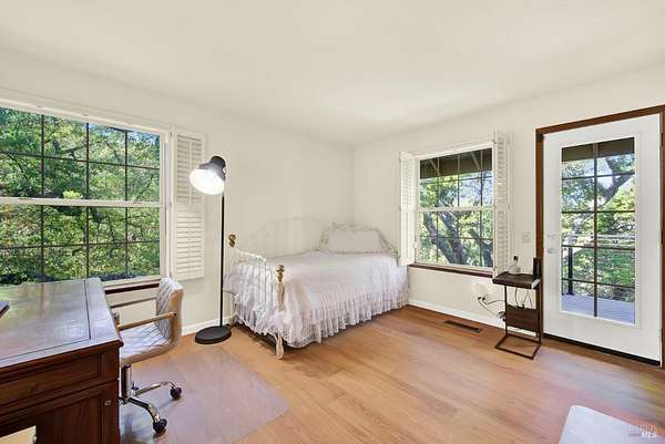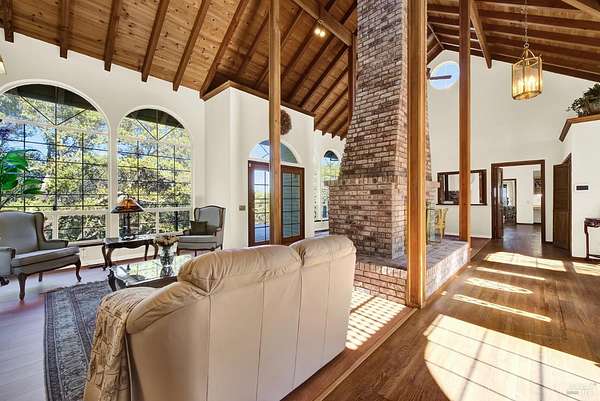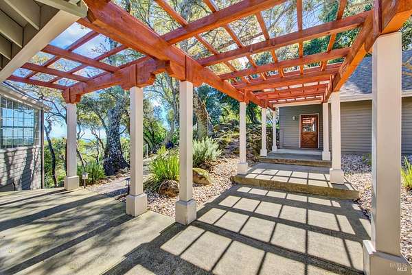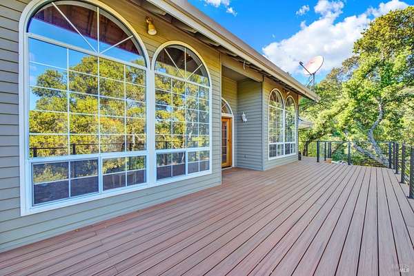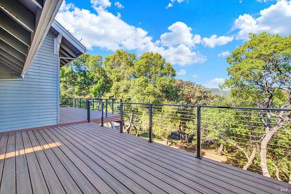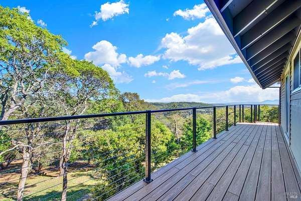 Rare Single-Story Retreat with Breathtaking Views In Green Valley Highlands! Welcome to one of the Highlands' most extraordinary offerings: a true single-story home (no interior stairs, no carpet) perched high on a private 2.5-acre wooded lot, delivering sweeping panoramic views of the Green Valley Country Club golf course, Suisun Valley vineyards, Mt. Diablo, Suisun Bay, and the Sacramento River. The crown jewel of this property is the newly installed, over 1,000 sq ft Trex deck a $150,000+ showpiece designed to capture every angle of those stunning vistas. Multiple living spaces connect directly to the deck, including the primary bedroom, one guest room, and all three living/dining areas, making indoor-outdoor living effortless. Inside, the split floor plan offers privacy and flow: the primary suite is privately situated at the rear, while two guest bedrooms anchor the front. The updated kitchen features stainless steel appliances and granite countertops, and the sunny breakfast room frames picture-perfect morning views toward Mt. Diablo. Two wood-burning fireplaces add warmth and ambiance across both living areas. The primary bathroom has been updated with a new walk-in bathtub, and the guest bath features a new shower. A pergola-covered walkway connects the oversized detached 2-car garage (one bay stretching 30 feet) to both the kitchen and front entry perfect for golf cart access. Extra parking in front accommodates guests. A 5-minute golf cart ride down a wooded paved trail leads directly to Solano County's only private golf course: the prestigious Green Valley Country Club offering golf, tennis, bocce, swimming & dining. The meticulously maintained lot features trimmed trees & vegetation maximizing views while preserving privacy with only one visible neighboring property. New walkways with handrails surround the home, plus a long rear pathway leads to marked, surveyed lot lines. A fire hydrant is conveniently located next door. Additional highlights: 18,000+/- gallon septic system, transferable 2+ yr home warranty, attic insulation replaced with both attic areas cleaned and sealed. Section 1 pest & roof repairs in progress, plus over $350,000 in total improvements over the past 3 years. ADU plans available for a proposed 2-bed/1-bath addition under the main level. Situated between San Francisco & Sacramento, Green Valley offers easy access to world-class dining in Napa, Yountville & Rutherford + Suisun Valley wine tasting & hiking. See Video!