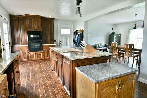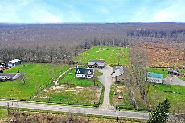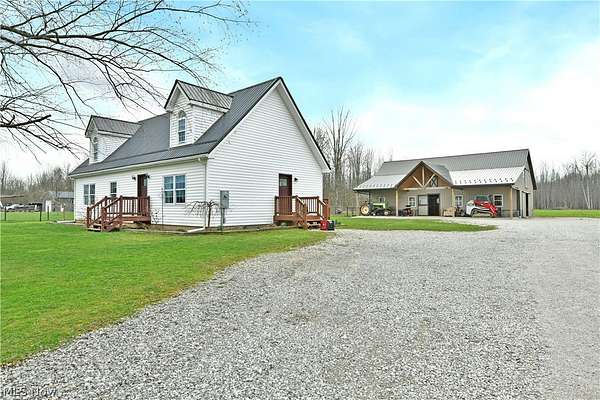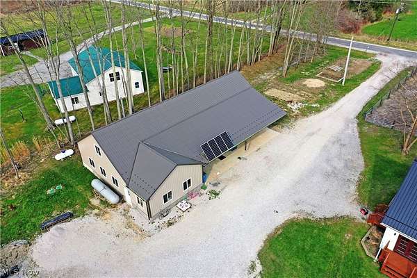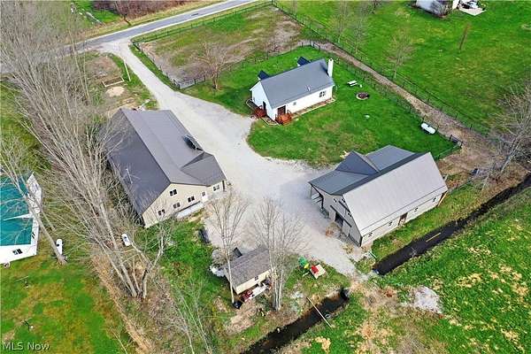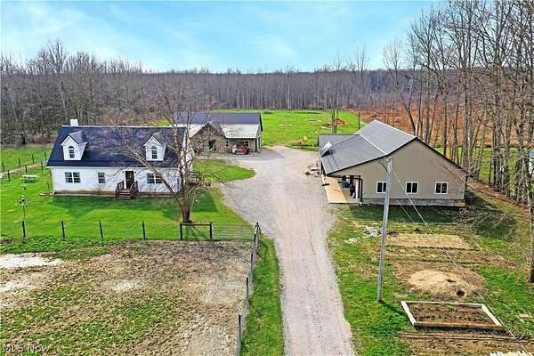 Could this quality built 3 BR 2 Bath Cape Cod working farm work for you & your family &/or business? Cozy up inside with beautiful hardwood floors, solid wood interior doors, its wired for electric and ready for you & your memories! The stylish kitchen has solid wood cabinetry & is accented with a gorgeous copper farmhouse sink & coordinated granite countertops that is sure to impress. The French doors in the kitchen open to a deck for ease of entertainment & the large island provides extra counter space & seating. In the bathrooms have the same quality cabinetry, granite countertops with coordinating copper sinks & quality slate style vinyl flooring. The 3 carpeted bedrooms are spacious with the 1st floor one being a playroom currently. Choose from an electric forced air heat furnace or wood burning stove heat in the living room. The basement is an open slate for your storage or entertaining needs. Range, refrigerator, & hot water tank purchased new in 2022 run on propane. The air-powered well pump was also newly installed in 2022. The 30'x29' barn was built in 2022 & features concrete floors, 4 box stalls, 4 tie stalls, water hydrant, hayloft. The LED lighting in the barn is wired together & run off of a rechargeable battery. The spectacular 49'x35' workshop was built in 2022 & features concrete floors with radiant heat, full kitchen with durable metal cabinetry, full bathroom & a 23'x16' loft. There is an impressive mechanical room with inverters for the 4 solar panels on the roof, wood burner & fire suppression tank. All the lights in the workshop run off of solar power. The large open area of the building has 18' cathedral ceilings. Use your imagination on ways to use this area to fit your needs. Enjoy looking out your front, side or back windows to see your horses out to pasture. On the other side of the creek behind the barn is a non-fenced pasture for gardening, additional horse pasture or whatever you desire. Approximately 50% of the property is wooded.