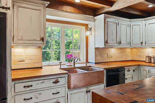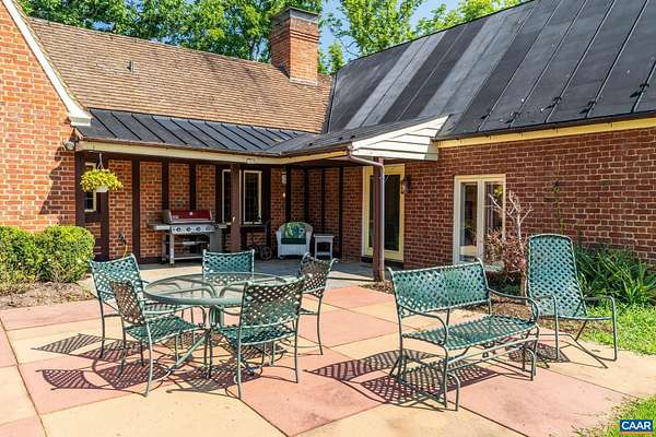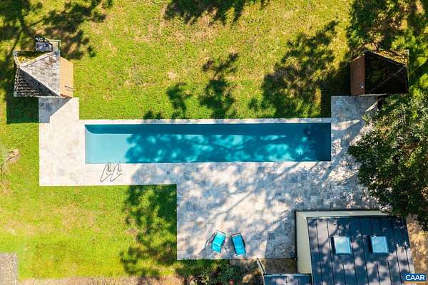 Tucked away on 11.5 peaceful acres, this French-style estate blends timeless European design with modern comforts. Originally built in 1964 using imported materials, the home has been thoughtfully renovated and expanded. It features 4 bedrooms, 3.5 baths, and a dramatic hallway with marble and wood inlay floors, custom built-ins, and a wall of windows. The spacious European-style kitchen includes a fireplace, window seat, and large island--ideal for everyday living and entertaining. A formal dining room and sunlit breakfast room add character and charm. Living and family rooms boast floor-to-ceiling windows framing pastoral and lake views. The fourth bedroom serves well as a guest suite or office with its own bath and entrance. Outdoor spaces include a covered porch, bluestone patio, and a pristine lap pool. A three-stall barn makes it equestrian-ready. Private yet close to town, this refined retreat offers serene living in a storybook setting.