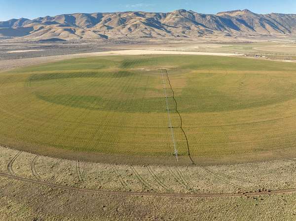 The ranch includes approximately 471+- deeded acres, complemented by 2,420+- acres of contiguous California State lease ground, providing substantial capacity for both forage production and grazing. At the core of the operation are 185+- acres under a single GPS-equipped center pivot, supplied by a 1,300 GPM turbine agricultural well. These irrigated fields are planted with an orchard alfalfa mix and orchard grass, producing seasonal yields 6+- tons per acre across three to four cuttings, supported by reliable water and productive soils. An additional 50+- acres of dry farmed ground further diversifies the agricultural base.