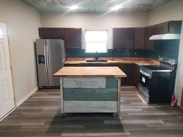 An unique home with lots of character and charm after the renovation updates. All new electrical wiring, Hardie board siding, insulation, windows, doors and paint. All new Plex line water and drain lines, vinyl flooring. A new side by side refrigerator/freezer, new stove and all new kitchen cabinets and a movable island with vintage oven with doors and racks for storage and a new butcher block top. Some of the interior walls are from the original lumber that was salvaged and pressure washed to give some character and create some unique accent walls .All new windows and blinds, 2 new entry doors have been added, some of the interior doors are original with barn door hangers. The bathroom is a real conversation piece with its new shower and the old restored tub, old cabinets and mirror and decor. New electrical meter pressure tank and well pump. There is 317 feet of frontage on HWY 181 and 300 feet of frontage on Bee St. Lots of trees and plenty of room for a garden or pets. A blending of some new and some old to make this a house that will be talked about by anyone that visits.