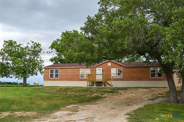 Beautiful ranch with Approximately 1,270 feet of frontage rd access. This is the property you've been waiting for. Located just outside of Shiner, this is absolutely the perfect spot to relax in full enjoyment. The home is a well maintained and cared for 2010 model, wind zone rated, double wide mobile home. 2,176 sq ft. of pure enjoyment featuring 4 bedrooms and 2 full baths. The primary bath features a walk-in shower, dual vanities and a large garden tub. Two living areas and a spacious kitchen make this home wonderful for entertaining. A new metal roof was recently installed at the end of 2025. The property is 71 +/- acres mostly open, w/ gently rolling hills & sweeping views. A peaceful brook runs through the front of the property that empties into a pond. The property has a barn with working pens, a large shop with floor drains great for processing, a smoke house and another large shop with 4 roll up doors. Both shops have power and plumbing. In addition, the front shop is equipped with an RV receptacle. Unrestricted and ag exempt!!!