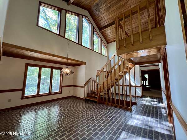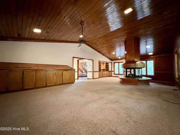 - Basement, Blinds/Shades, Bookcases, Ceiling Fan(s), Gas Log, High Ceilings, Kitchen Island, Vaulted Ceiling(s)