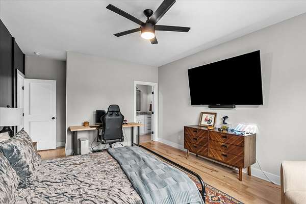 Nestled at the end of a private drive, this breathtaking custom built estate, on almost four acres, is truly one of a kind. This high end retreat offers unmatched privacy and timeless elegance yet remains just minutes from the interstate, dining, and shopping. The striking exterior features all white Hardie board siding, black windows, and inviting porches, creating exceptional curb appeal. Inside, soaring ceilings and a charming brick entryway set the tone for the home's sophisticated style. To the left, a stately office boasts custom black built-in bookshelves and rich hardwood floors that flow throughout the entire home. The expansive great room features a large brick gas fireplace flanked by built-ins, seamlessly connecting to the show-stopping designer kitchen. A ten foot island, quartz countertops extending up the backsplash, custom floor to ceiling cabinetry, gold accents, stainless steel appliances, a statement hood, and a gas range make this kitchen a chef's dream. The adjoining dining area is highlighted by a brick accent wall, adding warmth and character to every meal. The main level owner's suite offers private porch access, a dream closet with a storage island, and a spa inspired en suite complete with a freestanding tub, black shiplap accent wall, dual quartz vanities, gold fixtures, and an oversized tiled shower. A second main level bedroom with its own en suite is ideal for guests. A spacious laundry room with a sink and space for two washers and two dryers adds an extra layer of convenience. Upstairs, a striking metal railed staircase leads to five additional bedrooms, two with private en suites and two connected by a Jack-and-Jill bath, plus a loft and a dedicated media room perfect for movie nights. The three car garage includes a unique 212 sq. ft. secure room with a safe door, offering endless options for storage or hobbies. Outdoor living is equally impressive, featuring a covered patio for entertaining, a sparkling pool with a metal fence, and serene views of the surrounding acreage!