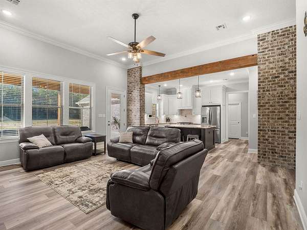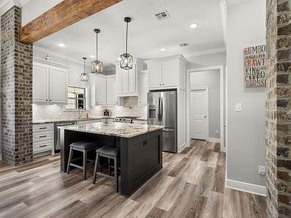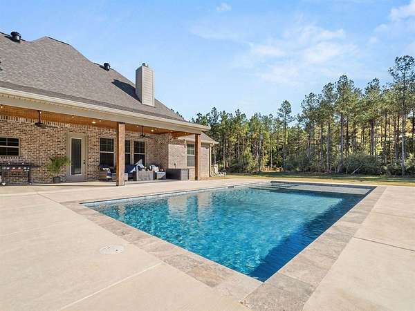 GORGEOUS 1.5-year-old custom-built home offering 4 bedrooms and 3 baths, perfectly situated on 10 private acres. Enjoy luxurious living with an open and split floor plan designed for both comfort and entertaining.Step inside to discover intricate custom finishes throughout, highlighted by an entertaining kitchen featuring top-of-the-line stainless steel appliances, quartz countertops, and abundant cabinetry. The spacious primary suite boasts a massive tiled walk-in shower and elegant detailing.Outdoors, you'll find a sparkling gunite pool, a covered entertaining patio, and a beautiful pond equipped with a deepwater well to maintain water levels year-round. A 33.5' x 26.5' three-car attached garage offers ample space for today's larger vehicles and extra room for hobbies or storage.