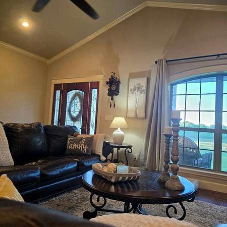 Located in Idabel, Ok (Country Living), in close proximity to all Idabel Amenities (Shopping, Schools, Churches, Medical, Entertainment, Food & more). This Home was built in '2015' by a well-Known Contractor & Customized within all areas, featuring High End Drywall, Crown Molding, Tray Ceilings, and OPEN & SPILT Floorplan. The Spacious OPEN Living Area includes a Warm Cozy Fireplace with Beautiful Built-ins, The Kitchen Offers Custom Cabinets, Pantry Closet, and a Purposely placed a Gas Range with Electric Oven. The Island allows for a Great Entertaining Flow, whether Guests are in Living Room or Dining Area. The SPLIT Floorplan offers 2 Great Bedrooms with Lots of Natural Light, and a Guest Bathroom w/ Tile Shower. The Primary Suite features a Walk-In Closet & En Suite with a Custom Tile Shower, Garden Tub & Dbl Vanity and a Customized Pull Out Cabinet for Hair Tools & more. Attached 2 Car Garage, Closet, Walkway to Outbuilding with Att. Tractor Shed. Covered Back Porch overlooks a Park Setting & Woods for The PERFECT Sunset... Enjoy while RELAXING on your New Covered Front Porch. Home is mixture of Brick & a 50 Yr Warranty on LP Smart Siding. Home is Well Insulated Averaging an Electric Bill per Mth. $125.00 or less (AMAZING). CALL Listing Office at bottom of page for more details or to set up a Private Showing. An ADDITIONAL 10 Acres +/- is Available for purchase, if desired.