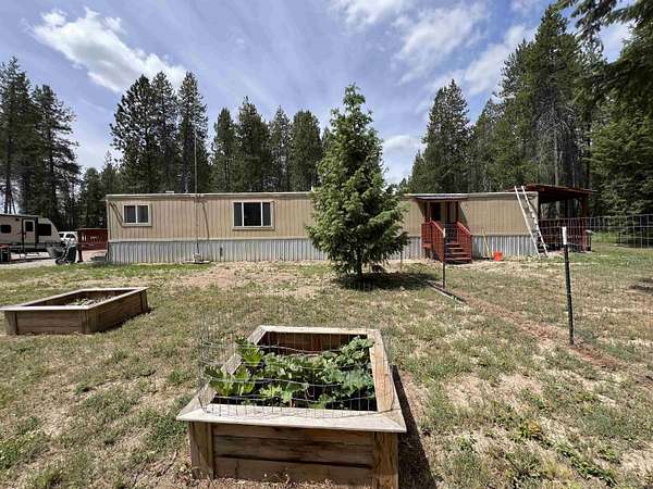 5 flat usable acres w good access and lots of storage. 2 bd 1 bath single wide w wood stove & lots of upgrades including a whole house water filter. Large, fenced dog run, and garden area are up and ready for your needs. Come sit by the large firepit while your family or friends utilize the RV site which has full hook ups. Peaceful setting is surrounded by recreational opportunities including hunting, hiking & fishing. Seasonal pond, nice mix of timber, potential views and big game make this property desirable. No CC&R's or HOA!! Financing available