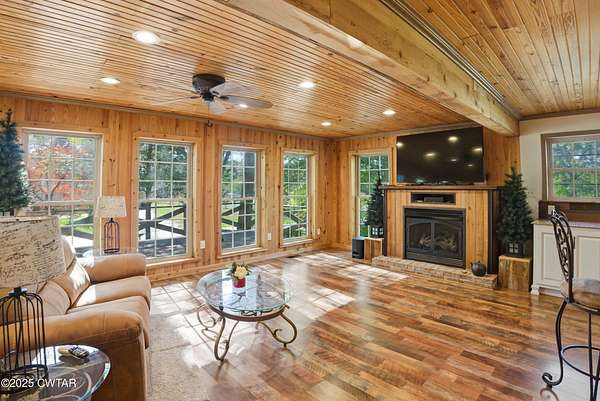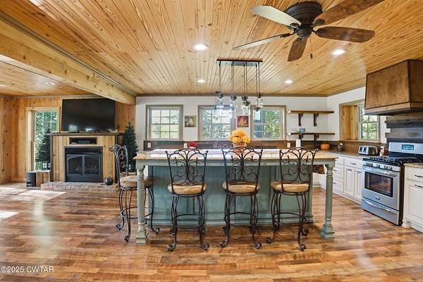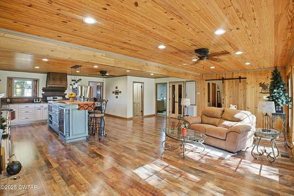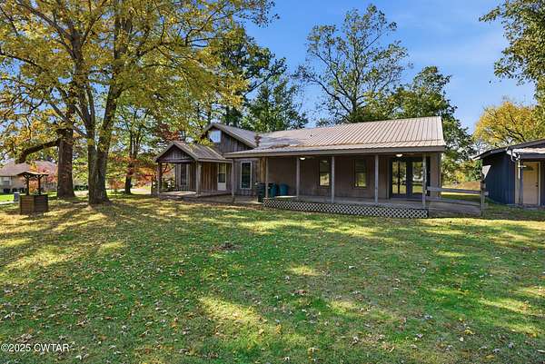 Super cool home with 3 BR 2 BA on 1.7 acres. Home has a living room and sep greatroom. The greatroom is open to the remodeled kitchen. tongue and groove ceiling in kitchen and greatroom. Kit offers custom cabinets with lots of neat storage cabinets (spice rack, garbage garage, deep drawers, copper farm sink, under mount microwave in the island, wine cooler, and gas range. Large breakfast bar. Lots of windows for natural light in this home. Detached 20x24 garage, workshop. 4 covered porch and a large deck across the front. Beautiful gas fireplace will keep you warm with the coming Fall and Winter. Metal roof only 3 years old. Only 30 minutes back to Jackson, convenient to Carroll Co Lake and super easy back to I-40. Don't miss this opportunity on this wonderful home. Call today Info deemed accurate, not warranted by co, seller or agent. sq footage and taxes to be determined by appraiser and assessor.