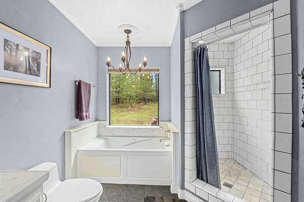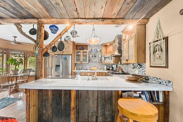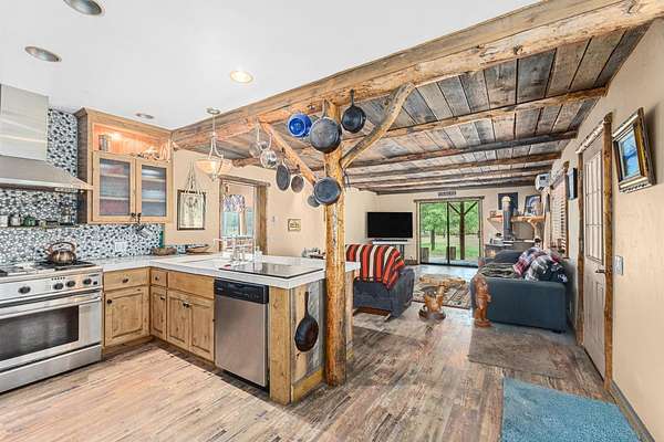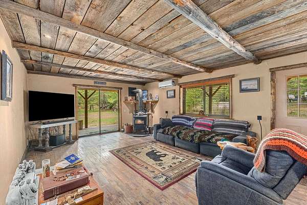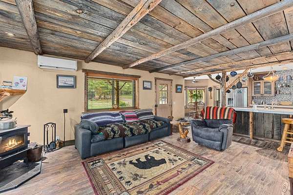 Welcome to peaceful country living without sacrificing modern convenience. Set on 10 acres, this beautiful 3-bedroom, 3-bath home offers space, comfort, and charm at every turn. Step inside to an open-concept living area with a cozy wood-burning stove and a mini-split system for year-round comfort. The kitchen features tile countertops, a gas range, stainless steel appliances, and a charming eating nook. The oversized primary suite is a true retreat, complete with vaulted ceilings, its own wood-burning stove, and sliding glass doors leading to a wraparound porch. The en suite bathroom offers a spa-like experience with a tiled walk-in shower, soaking tub, and generous storage. Upstairs, you'll find a second living area, two additional bedrooms, and a full bathroom-perfect for guests or flexible living. With a mudroom, ample storage, and easy access to nearby Springdale and Deer Park, this property truly blends privacy with convenience.