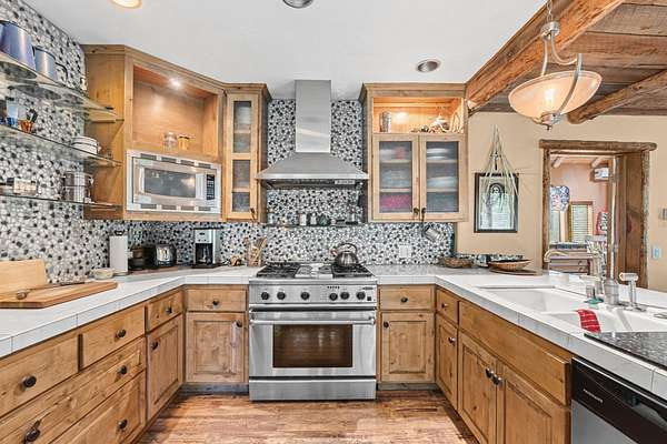 - Dishwasher, Dryer, Gas Range, Hard Surface Counters, Range, Refrigerator, Washer