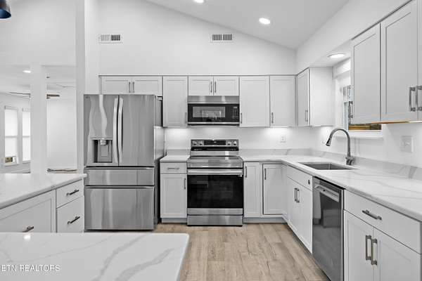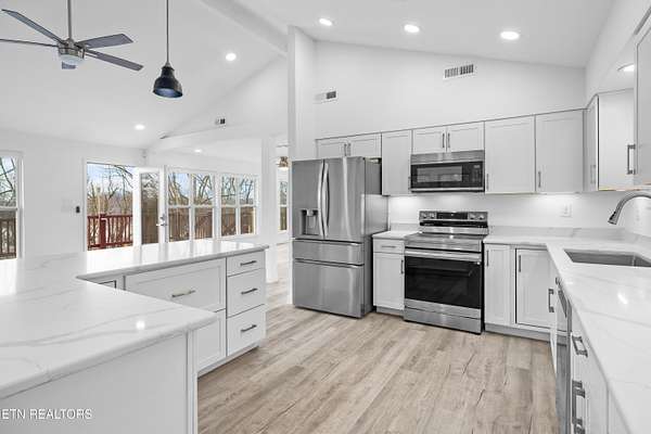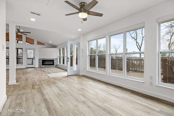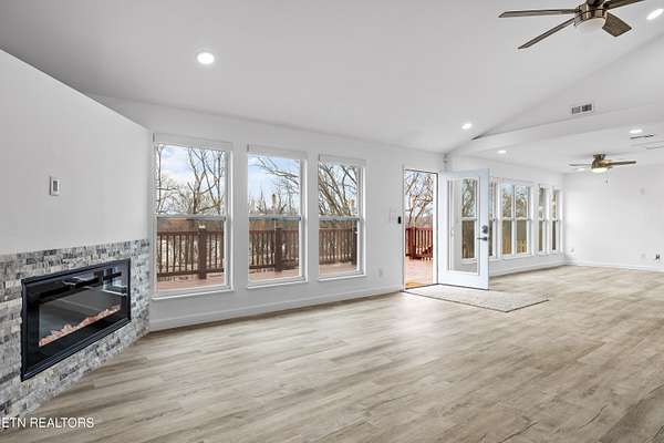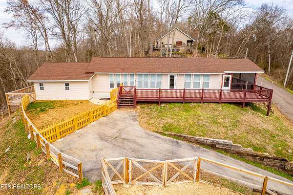 Welcome to this beautifully updated home tucked away on a quiet dead-end road offering seasonal views of Fort Loudoun Lake and a peaceful East Tennessee setting. Situated on a corner lot spanning two parcels, this property provides added privacy, space, and flexibility. Inside, the home has been completely updated with all new interior finishes, featuring a modern kitchen with quartz countertops, updated cabinetry, and stylish details throughout. Major system upgrades include new windows, new electrical, new plumbing, two HVAC systems, and a brand-new roof, giving peace of mind for years to come. Enjoy the outdoors from the expansive 365 sq ft screened-in porch overlooking the lake view, or relax on the 1,000 sq ft of decking and front porch, perfect for entertaining or simply taking in the scenery. Mechanical blinds on the front of the home provide added convenience and comfort. Additional highlights include a dedicated laundry room, built-in safe room, and a designated boat space at the lake, making it easy to enjoy the boating lifestyle. If you're looking for quiet, scenic living near Fort Loudoun Lake, this move-in ready home offers the perfect blend of privacy, updates, and outdoor living.
