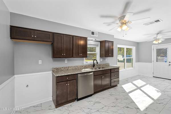 Check out this renovated one level home on a gorgeous 3 acre lot. Renovated kitchen w/new cabinets, granite countertops, SS appliances & NEW LVP flooring. Huge living room with lots of natural light overlooking the expansive back yard. Formal dining room. Enclosed garage could be a game room, bonus room or large home office. Large laundry room w/tons of shelving. Newer windows t/o. Updated baths w/granite countertops, new tub in hall bath & new tile. Exterior has been repainted. Fully fenced lot - most fencing was added by current owner. New roof - 2023. Covered back patio overlooks the beautiful, flat back yard. Tons of paved parking behind the 2nd gate. Storage building transfers as-is.