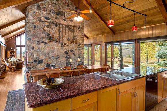 Introducing Mad Mountain Ranch, a very rare opportunity on 213 acres just a short 6 miles from downtown Steamboat and this exceptional property offers over 1/2 mile of Elk River frontage and private water fishing. The views truly are spectacular in every direction. Bordering National Forest on 2 sides with a variety of terrain including meadow to heavy timber, you can meander through miles of maintained trails on foot, horseback or ATV. The entrance to the Hot Springs Trail, Forest Service Trail 1171, and the Mad Creek Trail Head are literally out your back door with access to thousands of acres of National Forest beyond. In addition to private fishing on the Elk, the property features a well-stocked, roughly 1.5 acre pond for easier fishing success and it's a lovely place for picnics by the water. Hot Spring Creek makes its way through the property and several ditches boast excellent senior water rights dating back to 1904 which provide irrigation water and a plentiful supply to fill the pond. The 4 bedroom/4 bath home is air conditioned. Caretaker's quarters offer a great option for an on-site property manager. The primary bedroom is an updated, newer addition with vaulted ceilings, spacious bath with dual vanities, jetted tub and walk-in shower, plus a large walk-in closet. The main living area boasts lots of newer windows with spectacular views and is surrounded by a huge patio with fire pit, a lovely place for festive outdoor gatherings or casual summer dining. The well has a 1000-gallon cistern and a 32 KW generator provides additional peace of mind. There is an older barn on the property with a workshop, and a 1600 sq. ft., heated equipment barn/shop to store all the recreational toys, tractors and gear. There are no covenants, so your options are endless. So, bring the horses and ride off into the National Forest, fish along your private stretch of the Elk River, groom cross country ski trails or even snow-mobile in your meadow.