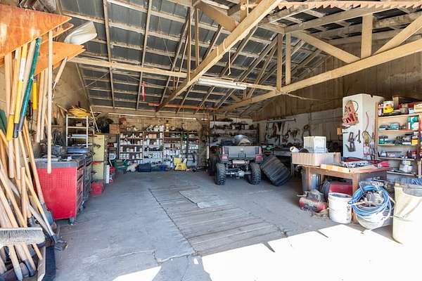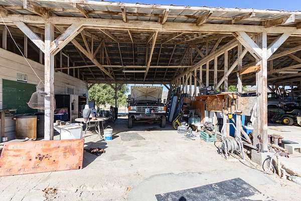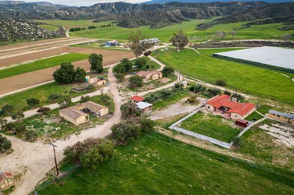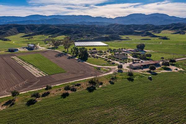 Improvements include two residences, a shop with an adjoining studio, a barn, a greenhouse, and a covered agricultural work area, all positioned for efficient operations without detracting from the property's expansive open landscapes. The ranch's terrain and infrastructure lend themselves equally to commercial-scale agricultural use or private retreat living, combining practicality with enduring natural beauty.