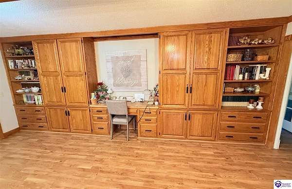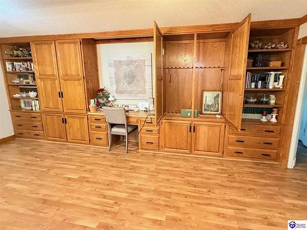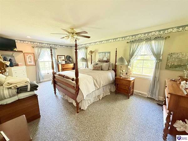 Elegant Country Estate with Timeless Charm Welcome to this captivating 5,000+/- square foot home that perfectly blends class, comfort, and character. From the moment you arrive, the graceful circle drive sets the tone for this stunning estate nestled on 6.08 serene acres. Inside, the chef's delight kitchen inspires culinary creations, while the spacious family room offers a cozy fireplace and seamless access to a beautiful patio--perfect for entertaining or relaxing. A striking spiral staircase adds architectural elegance and leads to even more inviting living spaces. Thoughtful built-ins elevate the home's charm, including custom china cabinets for your finest dishes and built-in bookshelves with a discreet hidden gun cabinet. With 4 bedrooms plus a versatile 5th room that can be used as a modified bedroom, and an additional hobby room ideal for an office, crafting studio, or playroom, there's space to fit every lifestyle. The primary suite is a private oasis featuring an indulgent whirlpool bath for the ultimate relaxation retreat.Classic elegance and modern comforts meet here--where space, style, and sophistication welcome you home. Data believed true. Buyer to confirm prior to offer. *Preapproval or proof of funds required for tours and must accommodate offers.
