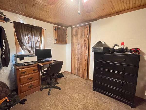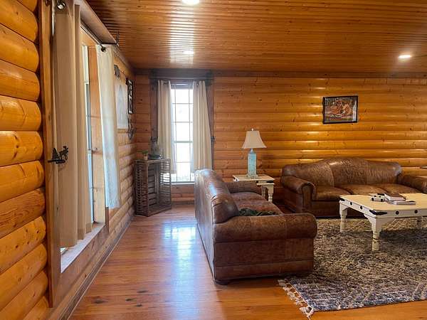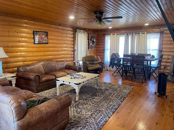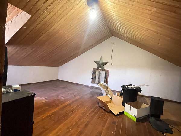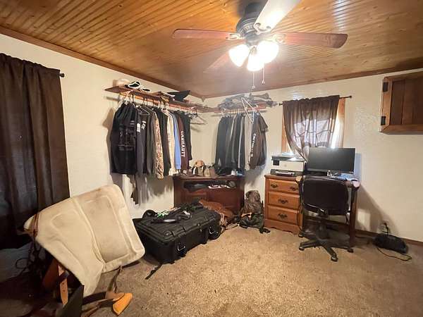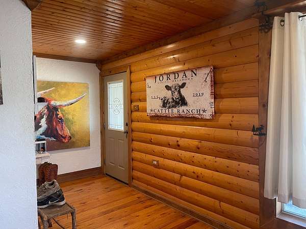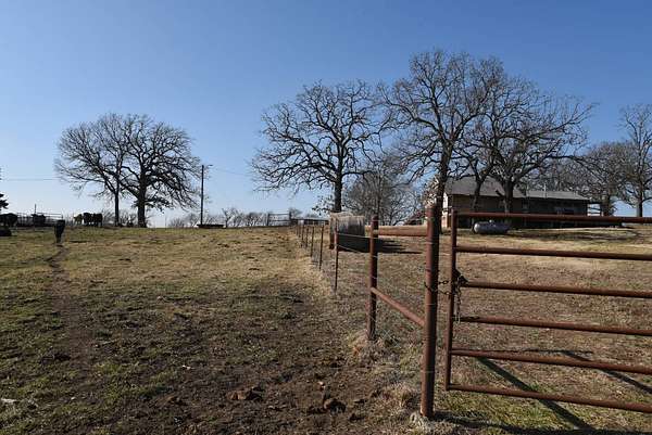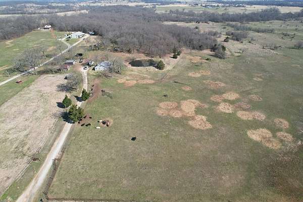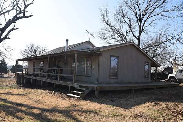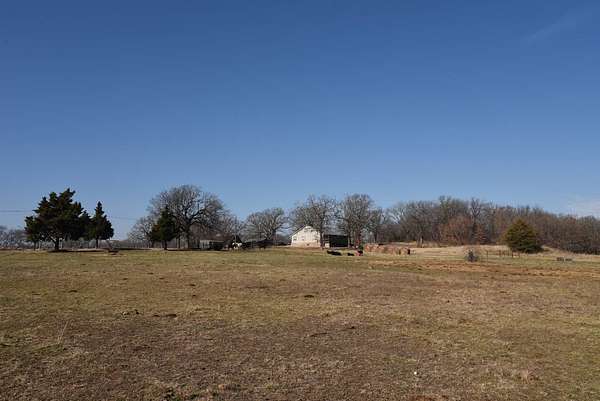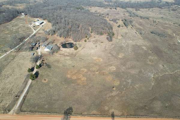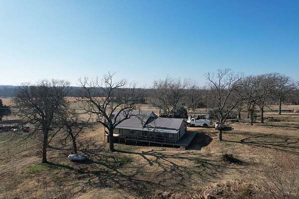 Set on 40± scenic acres, this rustic farmhouse offers a rare blend of pasture, water, and wooded privacy just minutes from town. The land is fenced and cross-fenced with newer 6-strand barbed wire, making it ideal for livestock or horses, and features two ponds, rolling pasture, and a heavily wooded past the homesite. A pipe-fenced entry, multiple outbuildings, and open grazing space invite you to bring your cattle and horses and enjoy true country living. Originally built in 1900 (per courthouse records), the home is rich with knotty wood throughout and classic farmhouse character. Offering 2 bedrooms, 1 bath, and a flex room, the layout is both functional and flexible-the flex room off the primary bedroom could serve as a third bedroom or home office, while the second bedroom is a loft-style space upstairs. The cozy living room is anchored by a pellet stove, with a propane heater in the primary bedroom, and the kitchen features a propane range, vinyl windows, and a durable metal roof. A basement cellar adds storage and storm protection. Outdoor living is just as inviting, with a covered back patio overlooking one of the ponds, perfect for quiet mornings or sunset views. Additional improvements include two loafing sheds, an older wood barn, and a 2-car carport/equipment shed with dog run. Conveniently located approximately 3 miles from Vinita, 15± minutes to Horse Creek on Grand Lake, 25± minutes to Shangri-La, 30± miles from Grove, and about one hour from Tulsa International Airport, this property offers peaceful rural living without sacrificing accessibility.