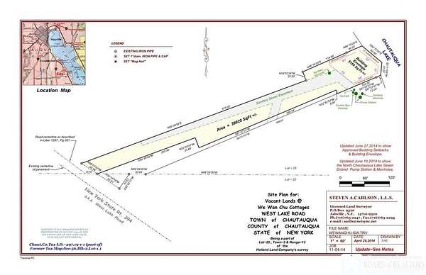 This unique 1.19-acre lakefront property presents an exceptional opportunity for both residential and commercial development, just 1 mile from Chautauqua Institution. This parcel features 91' of lake frontage and breathtaking views that include the iconic Chautauqua Bell Tower. The lot offers a generous 5,000+ square feet for building, with a 10-foot variance from the lake, allowing for creative architectural designs while ensuring a comfortable distance from the water. The flexible zoning accommodates various development options, making it ideal for a family home, a business, or a combination of both. Surrounded by natural beauty, this property not only provides a serene environment but also stands as a rare gem for those looking to create a distinctive space that harmonizes with its picturesque landscape. Other parcels available for sale connecting to this parcel totaling over 400' of lake frontage: Seller to provide survey. Taxes will be determined upon sale.